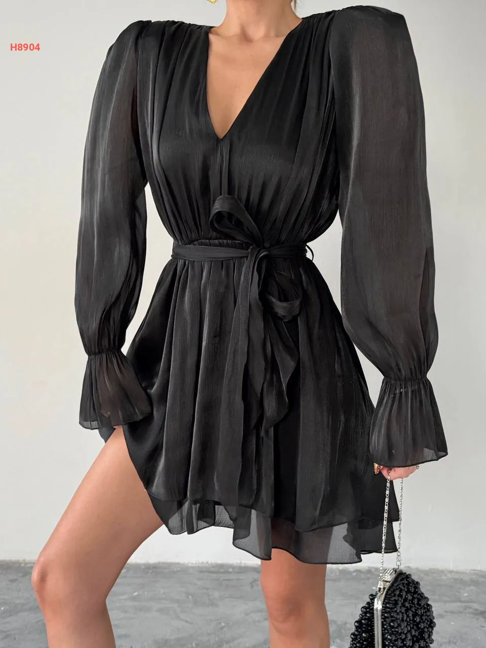فستان قصير كشكش شفاف لميع