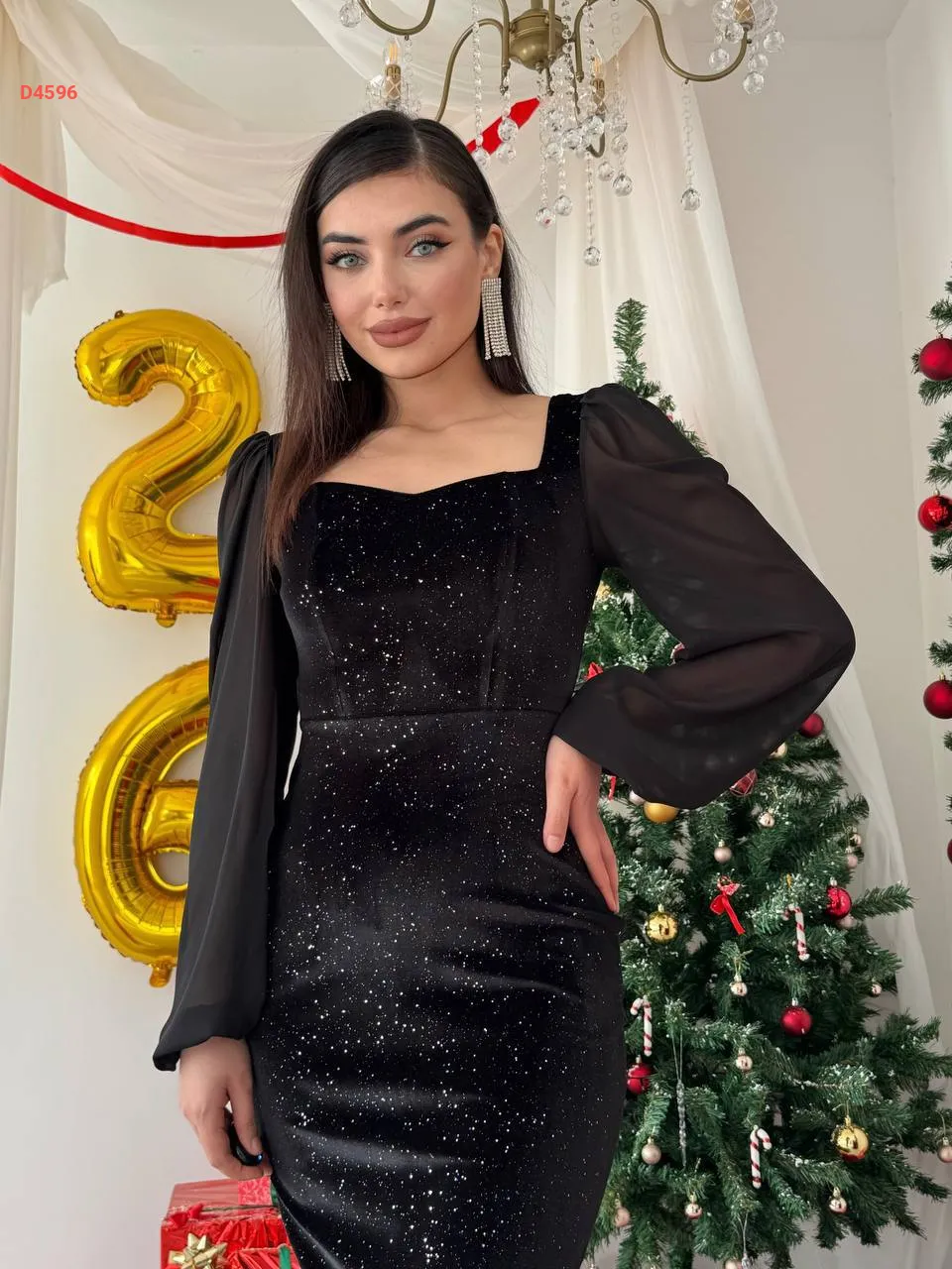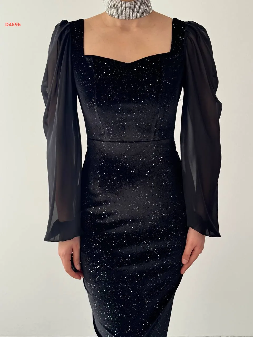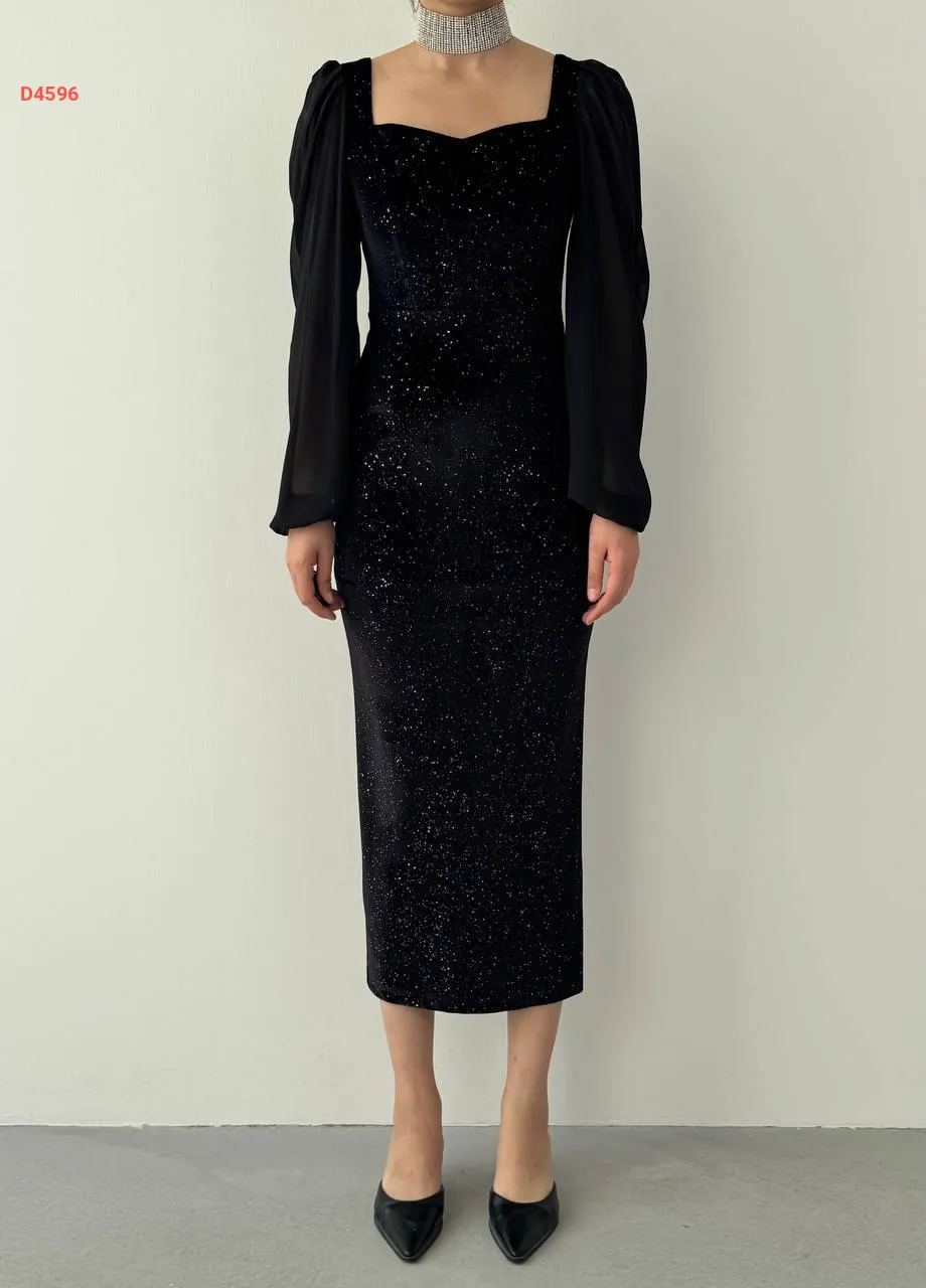 فستان مخمل لميع بأكمام شيفون