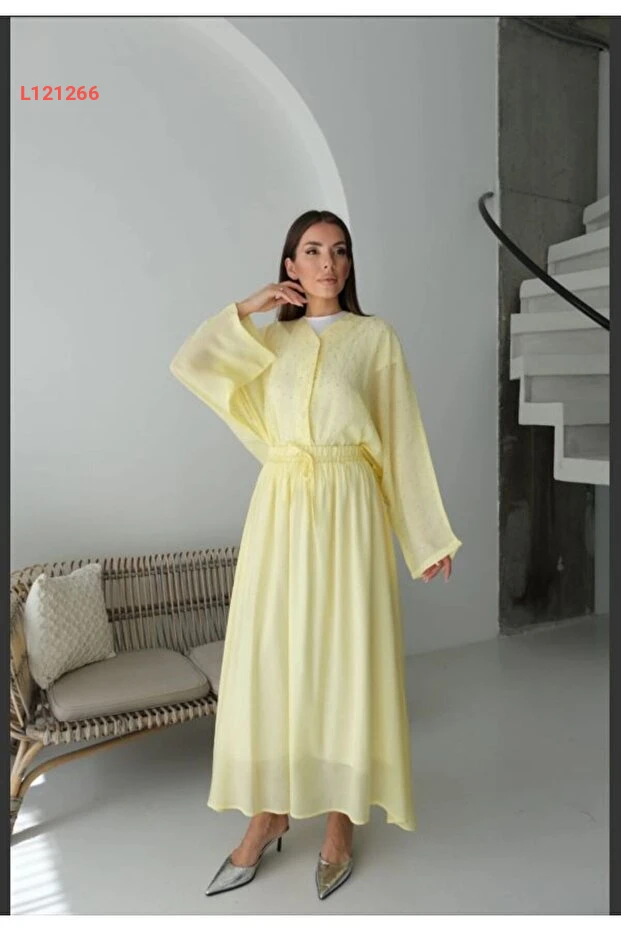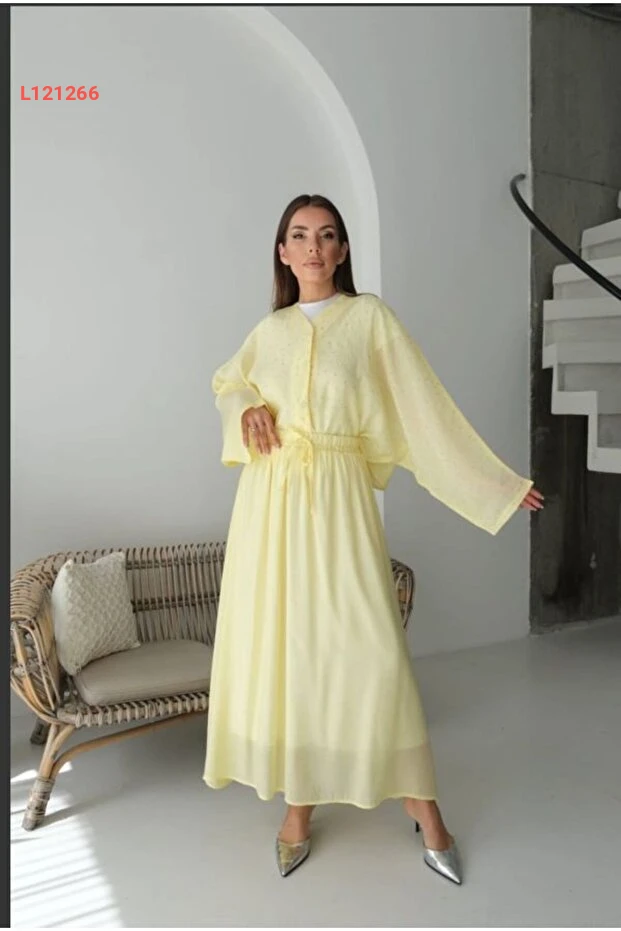 اكتشفي أناقتك مع طقم SHİROSA المكون من تنورة مزينة بحجر الجواهر وقميص أنيق، حيث يجمع بين الرقي والراحة في تصميم واحد. يضفي هذا الطقم لمسة من التألق على إطلالتك، مما يجعله مثاليًا لمناسباتك الخاصة أو التجمعات اليومية. ارتدي الثقة والجمال مع كل خطوة!