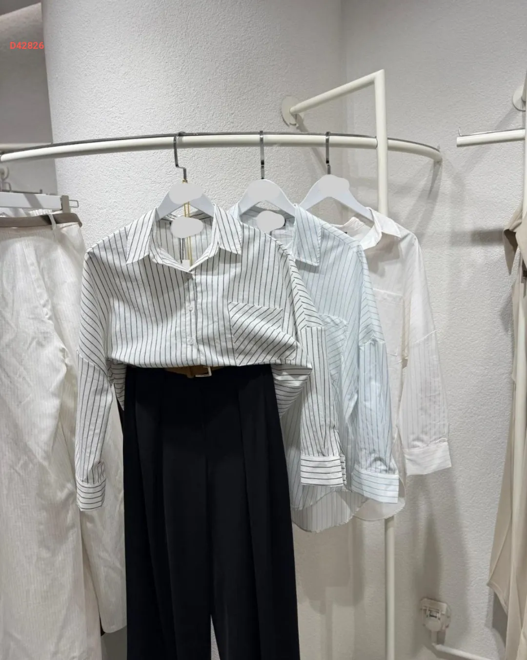 قميص مخطط بأزرار ، مع جيبة على الجانب