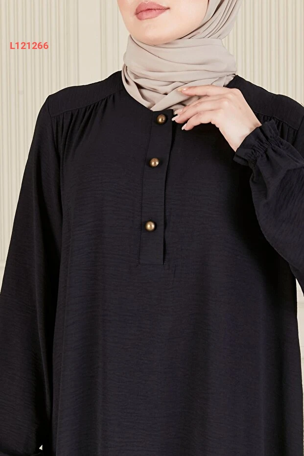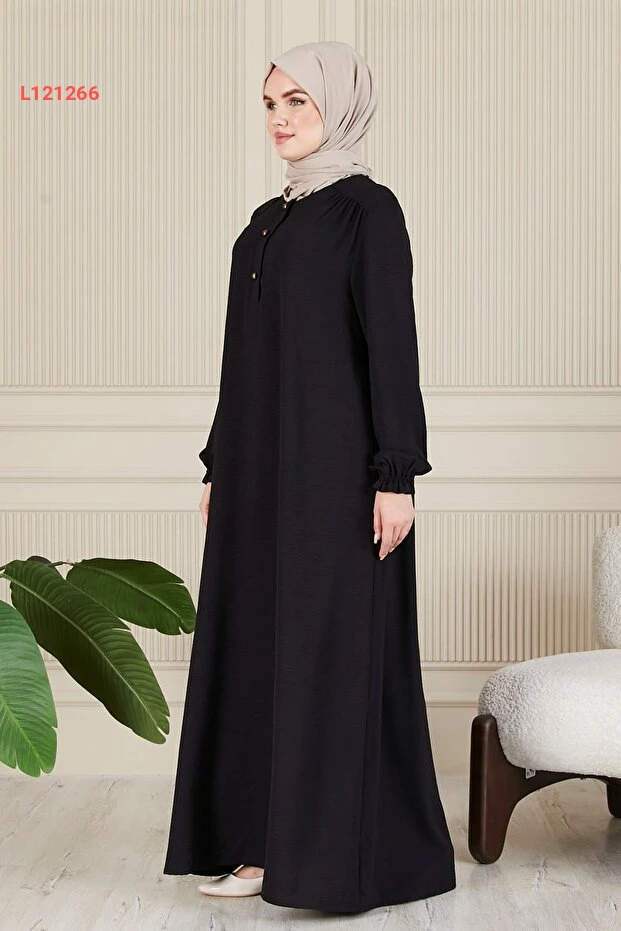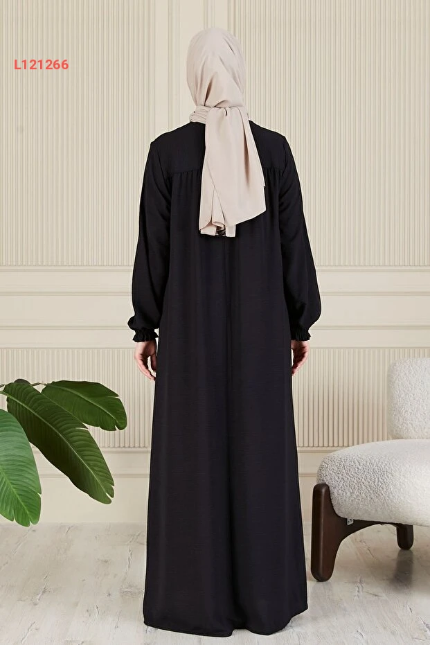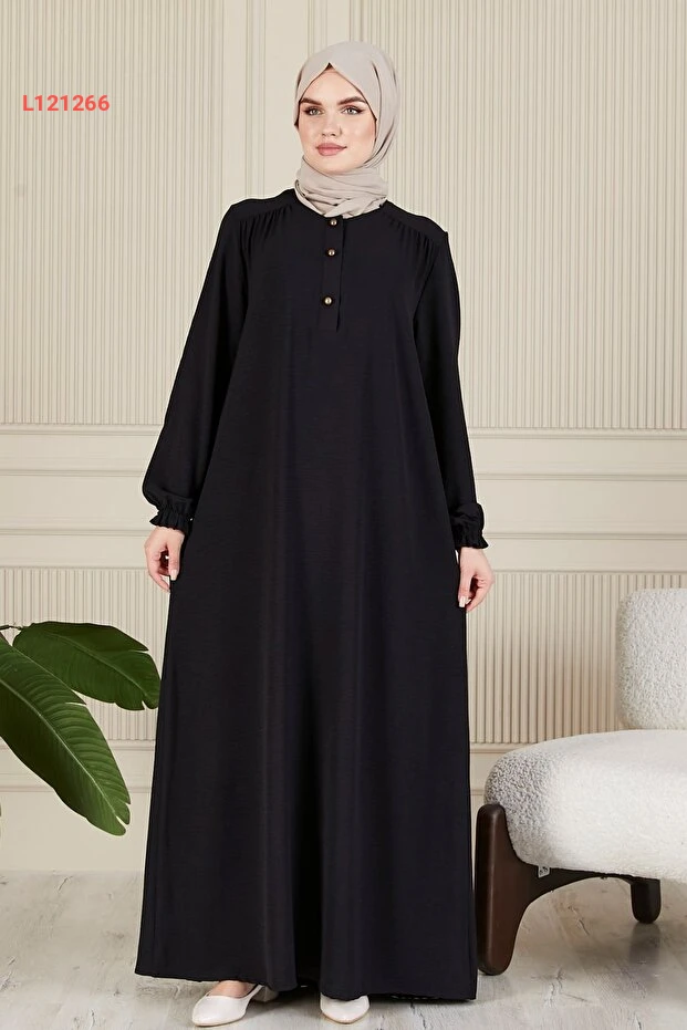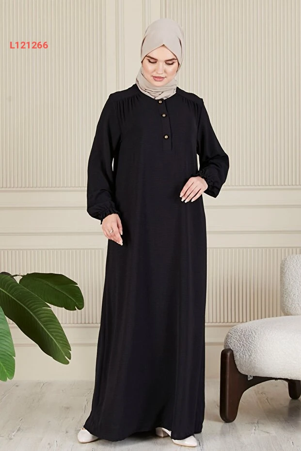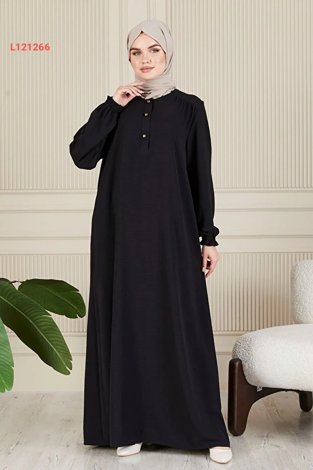 استمتع بأناقتك مع فستان Gömlek يضم ياقة جذابة وأزرار أمامية، مصمم من قماش الأيروبين الخفيف الذي يوفر راحة مثالية. هذا الفستان السلاشي هو الخيار المثالي لكل امرأة تبحث عن إطلالة محتشمة وأنيقة، سواء كان في المناسبات العائلية أو لأداء الصلاة، مما يجعله رفيقًا مثاليًا لكل الأوقات.
