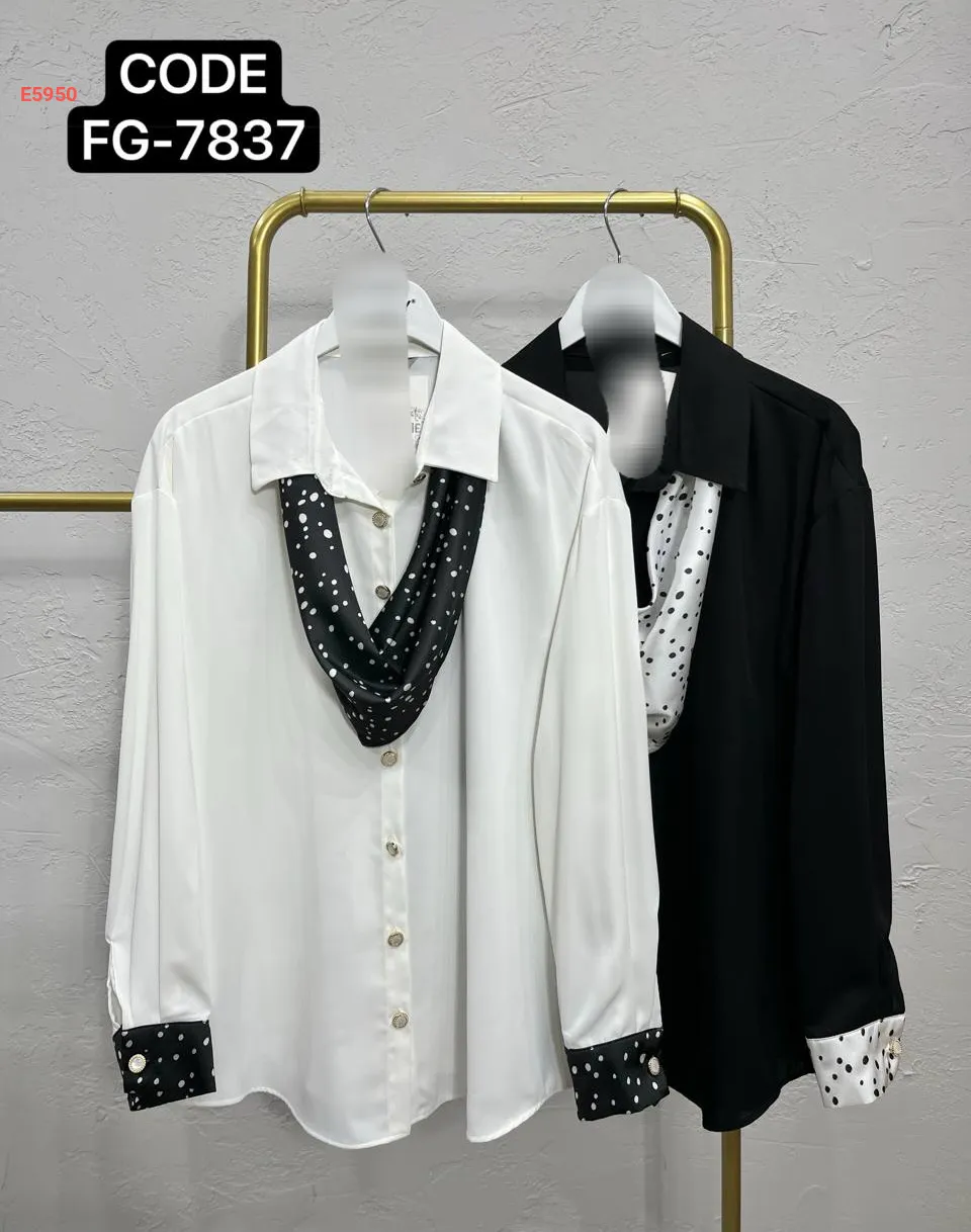 قميص بفولار وتفاصيل منقطة