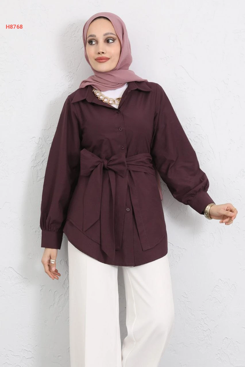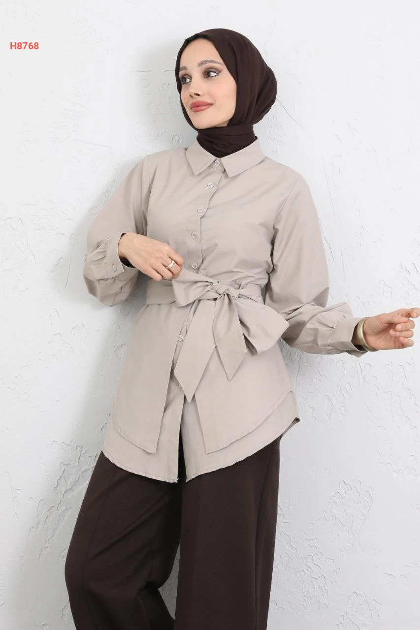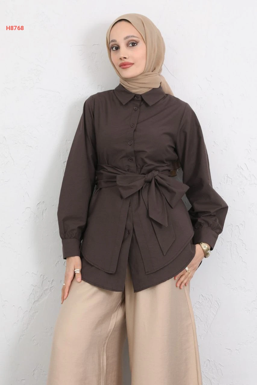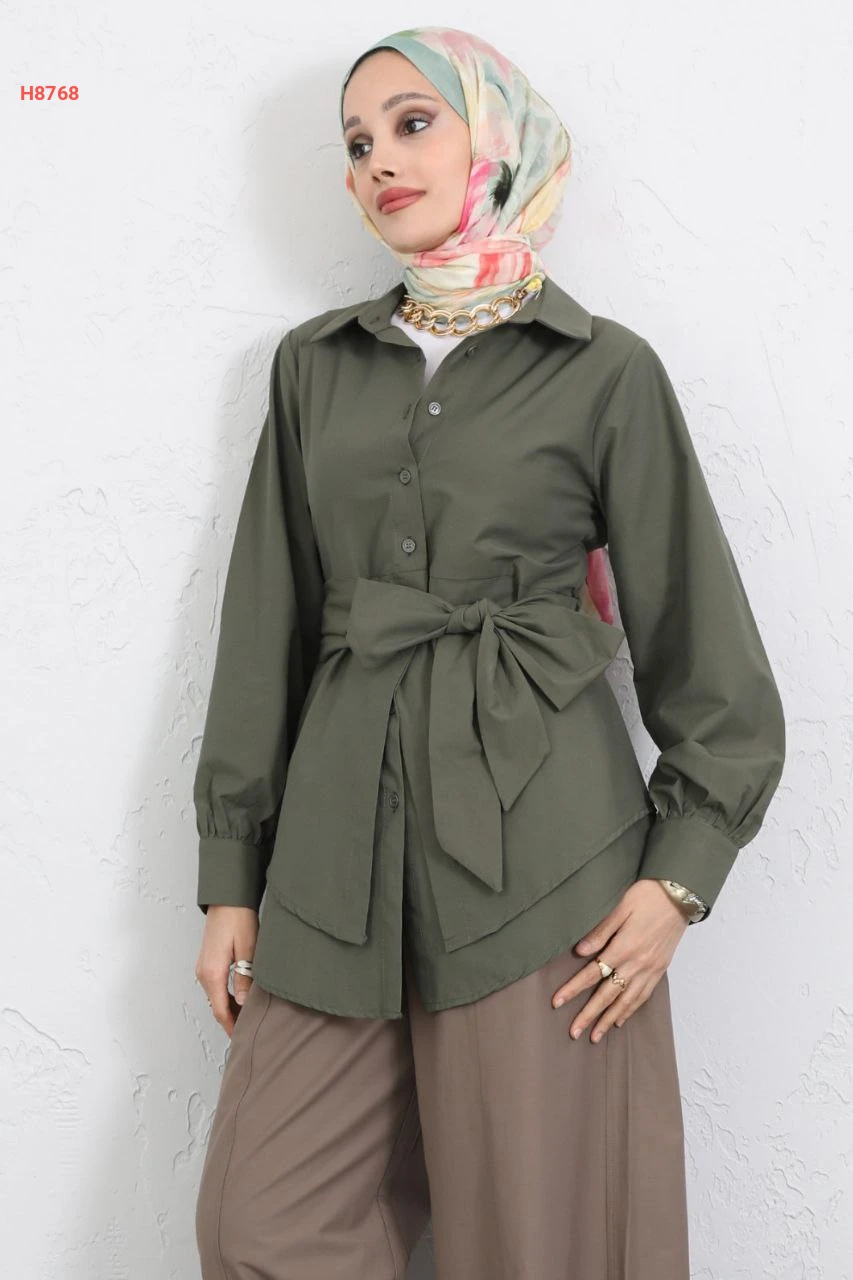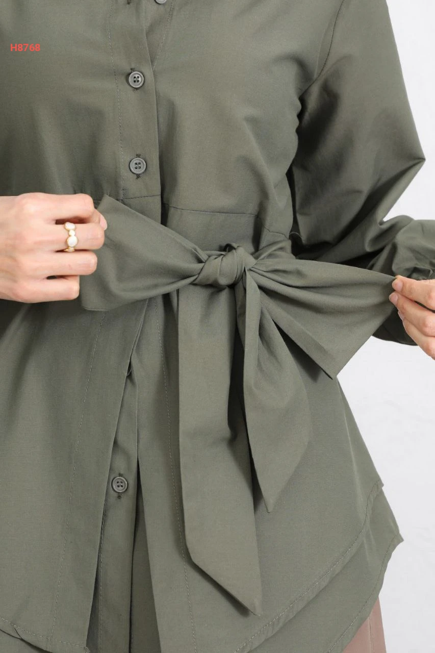 قميص سادة طبقات بحزام