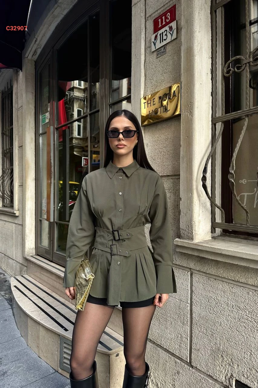 قميص مخصر بحزام أمامي مزدوج