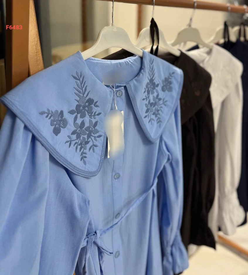 قميص بياقة مطرزة وزنار رفيع
