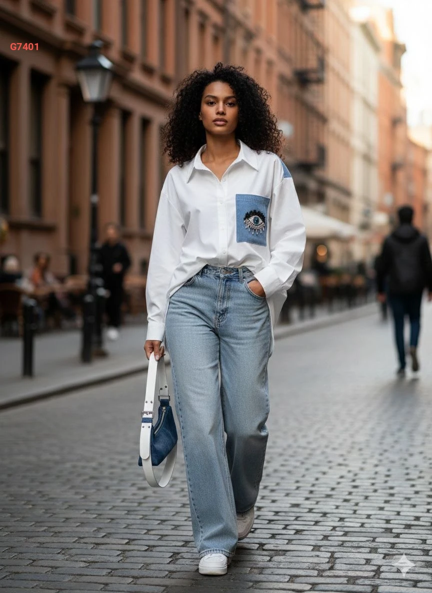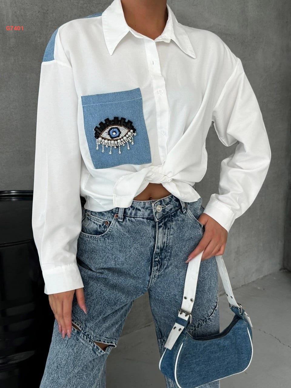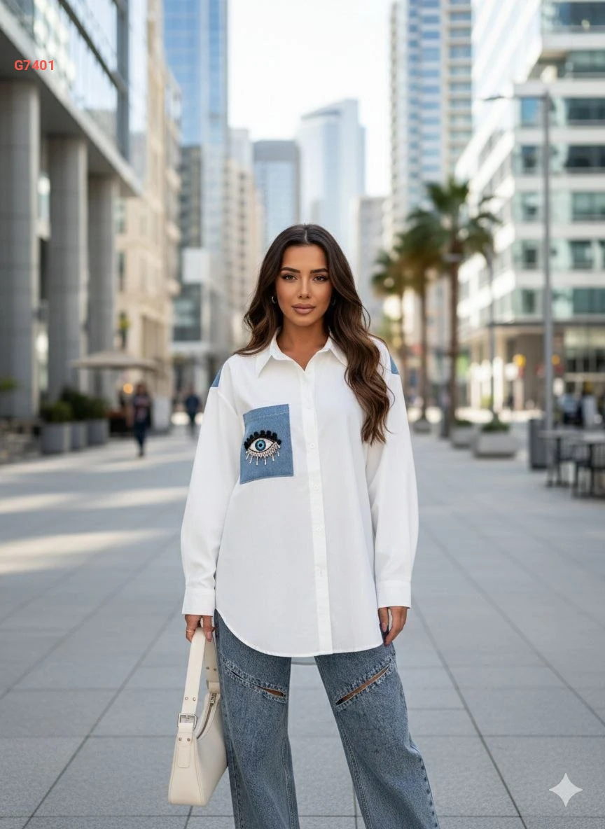 قميص بجيبة جينز مطرزة