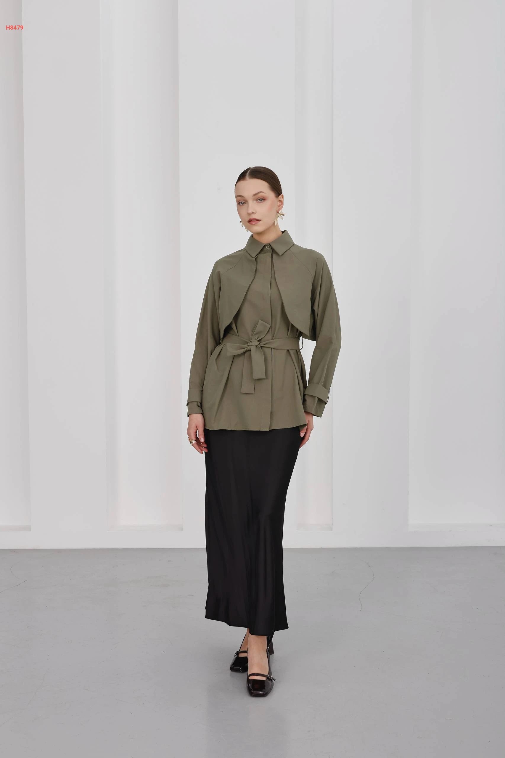 قميص بأزرار مخفية موديل يلك مع ربطة خصر