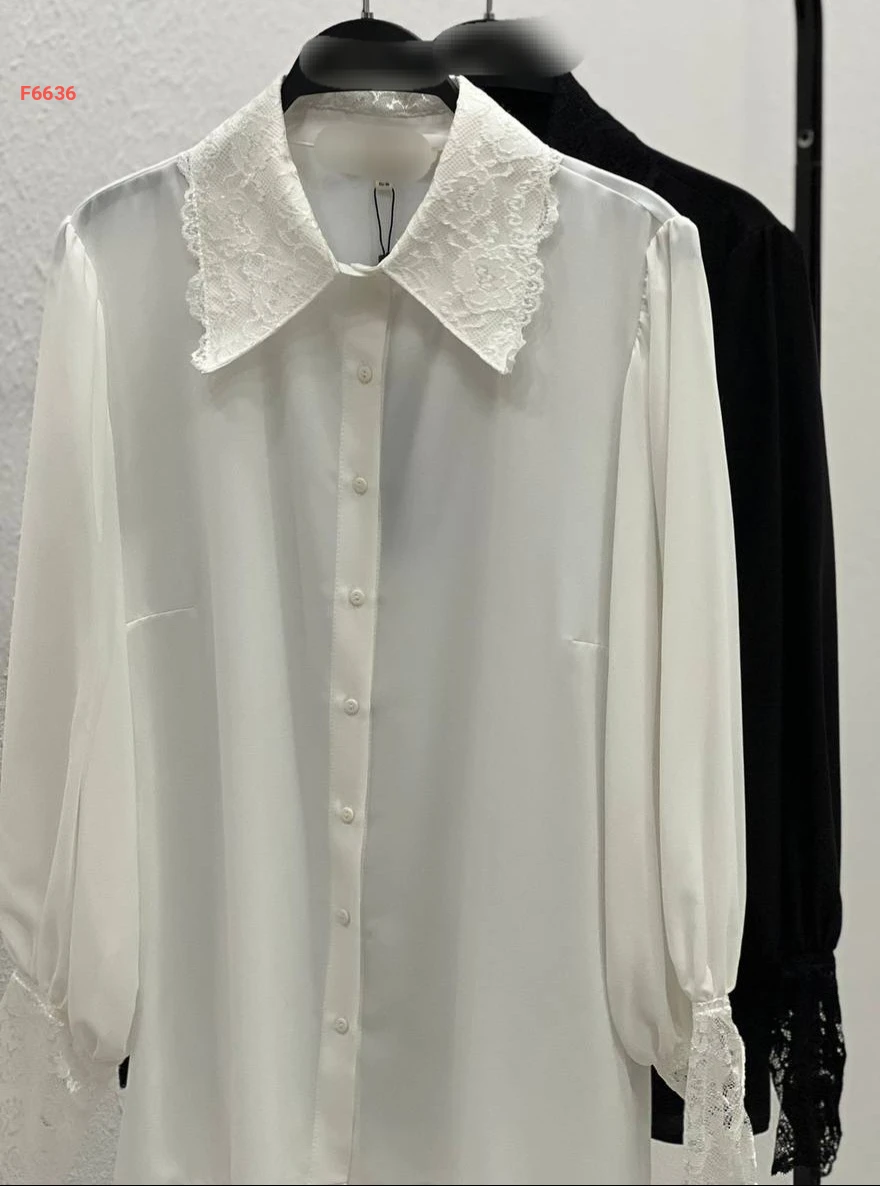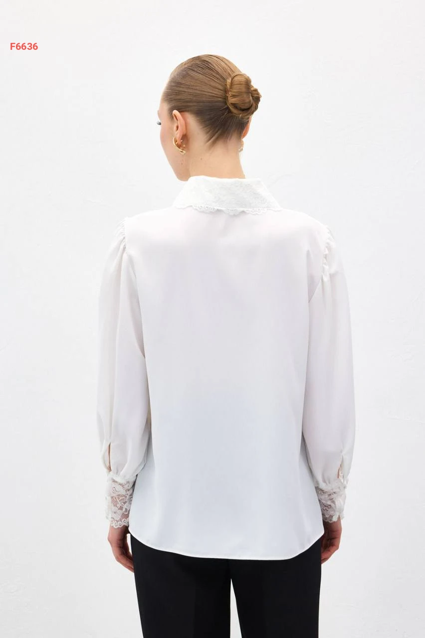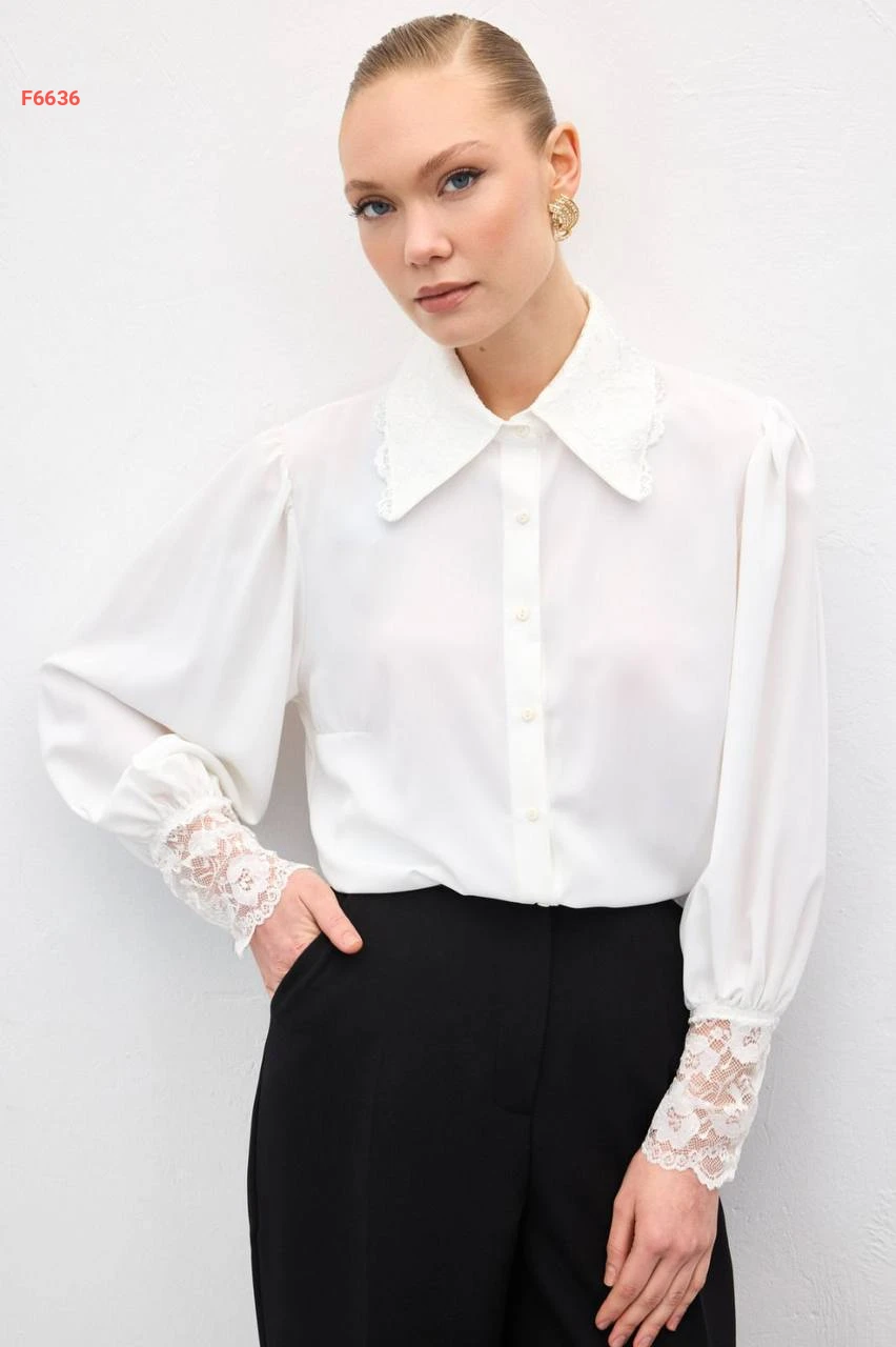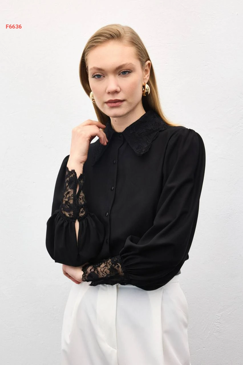 قميص بياقة وأكمام دانتيل