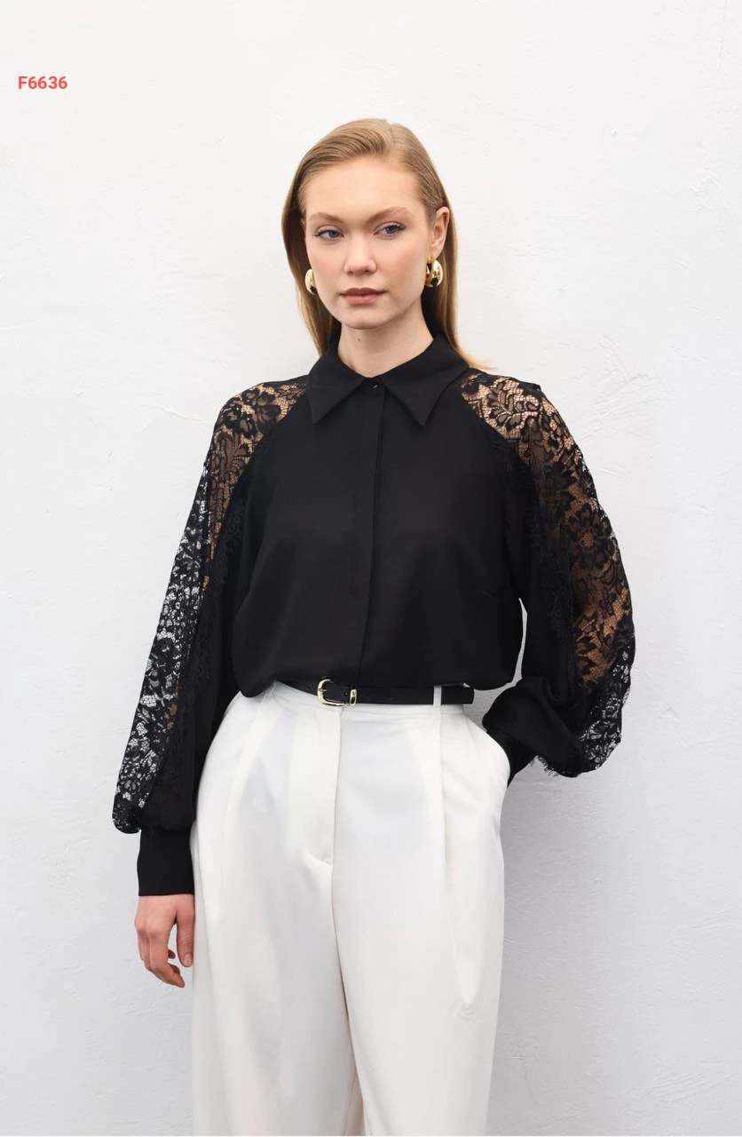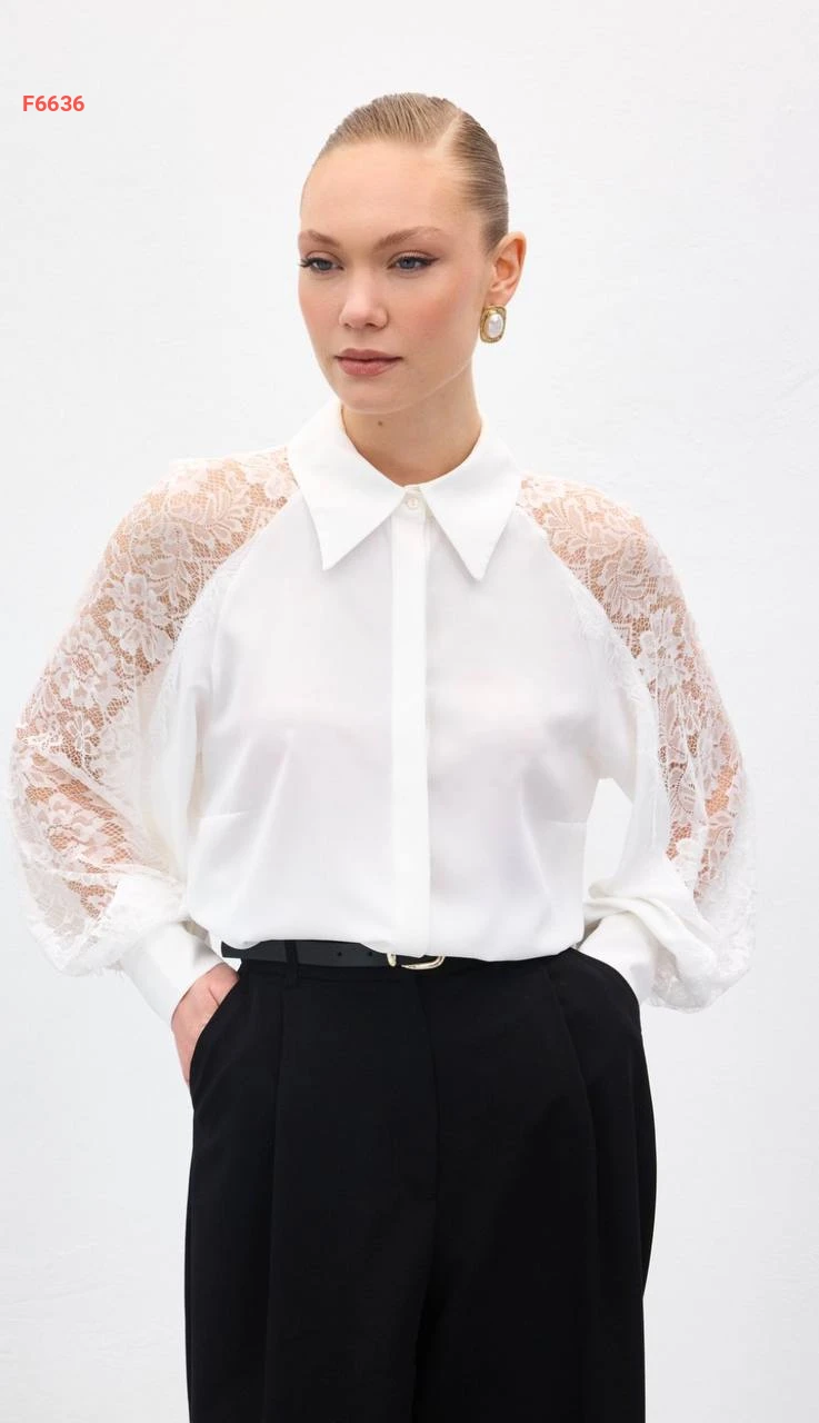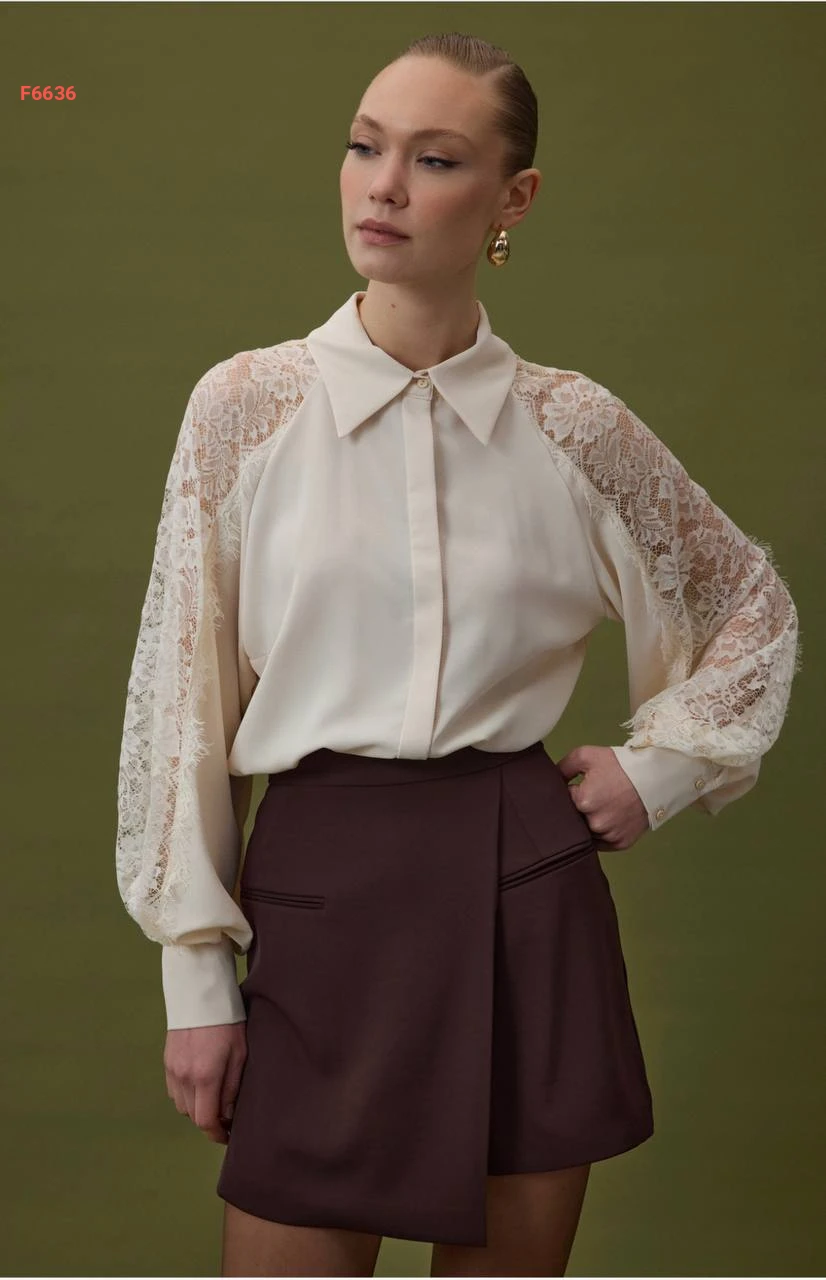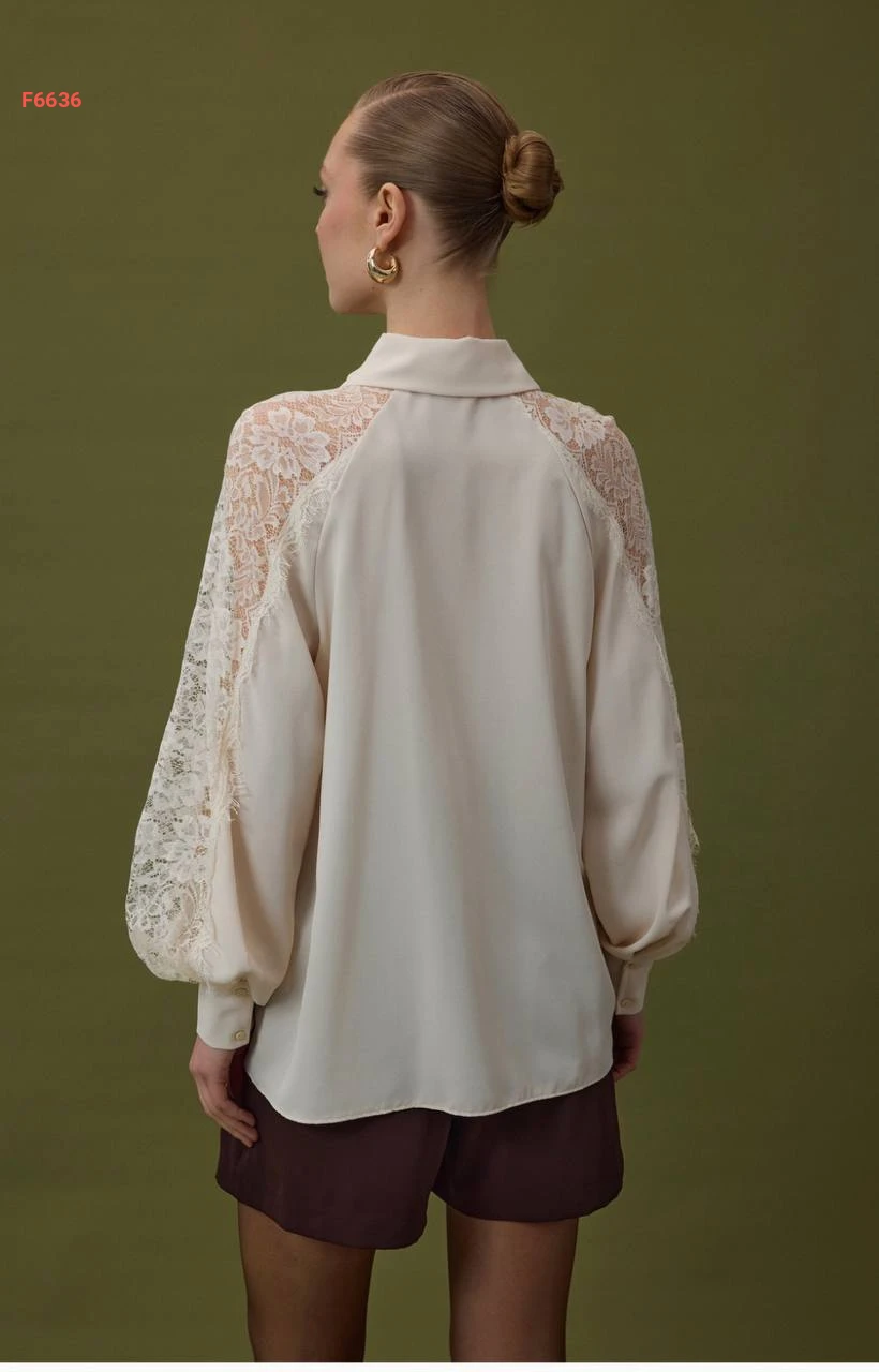 قميص بأكمام دانتيل مفرغة