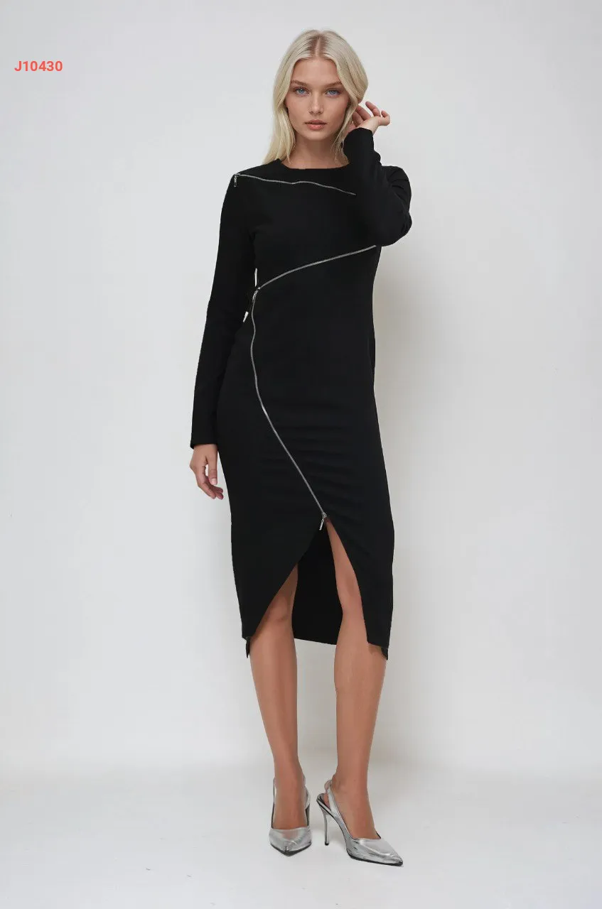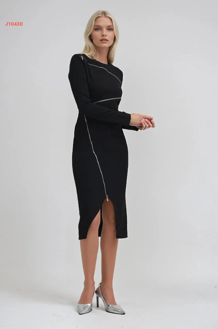فستان أسود قصير بسحابات