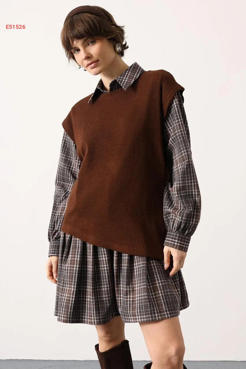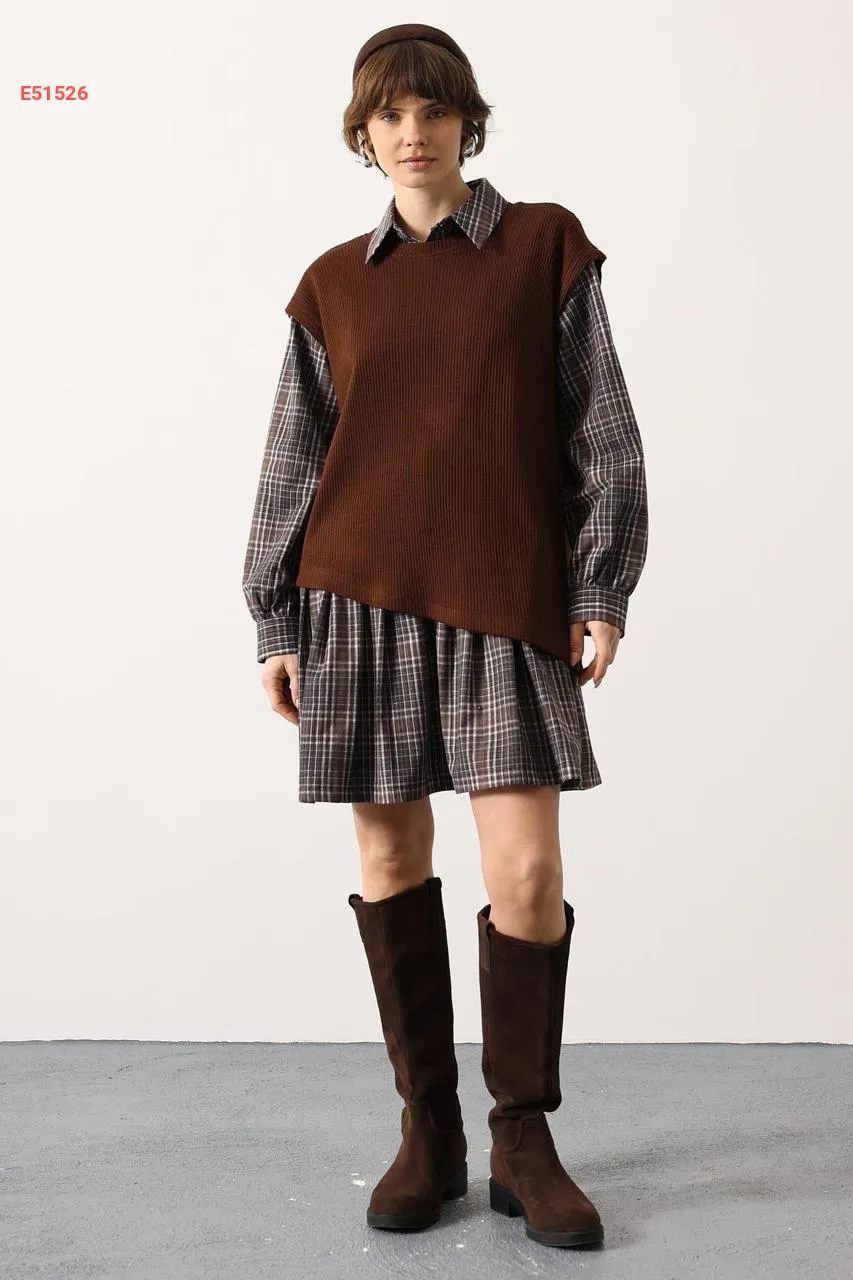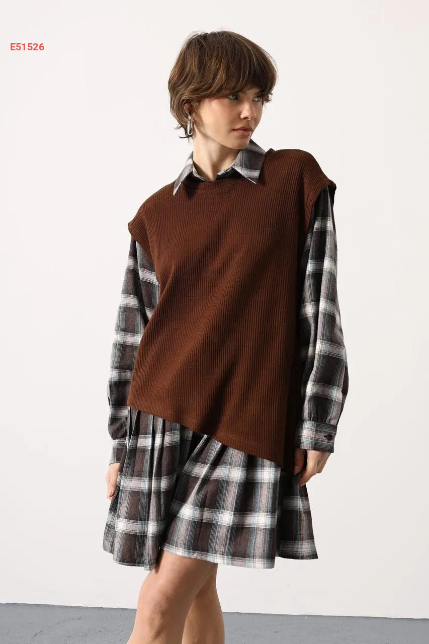 فستان قصير كارو مع بلوزة
