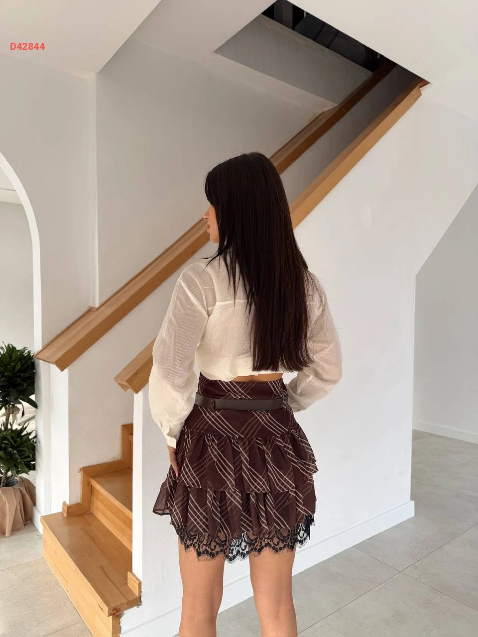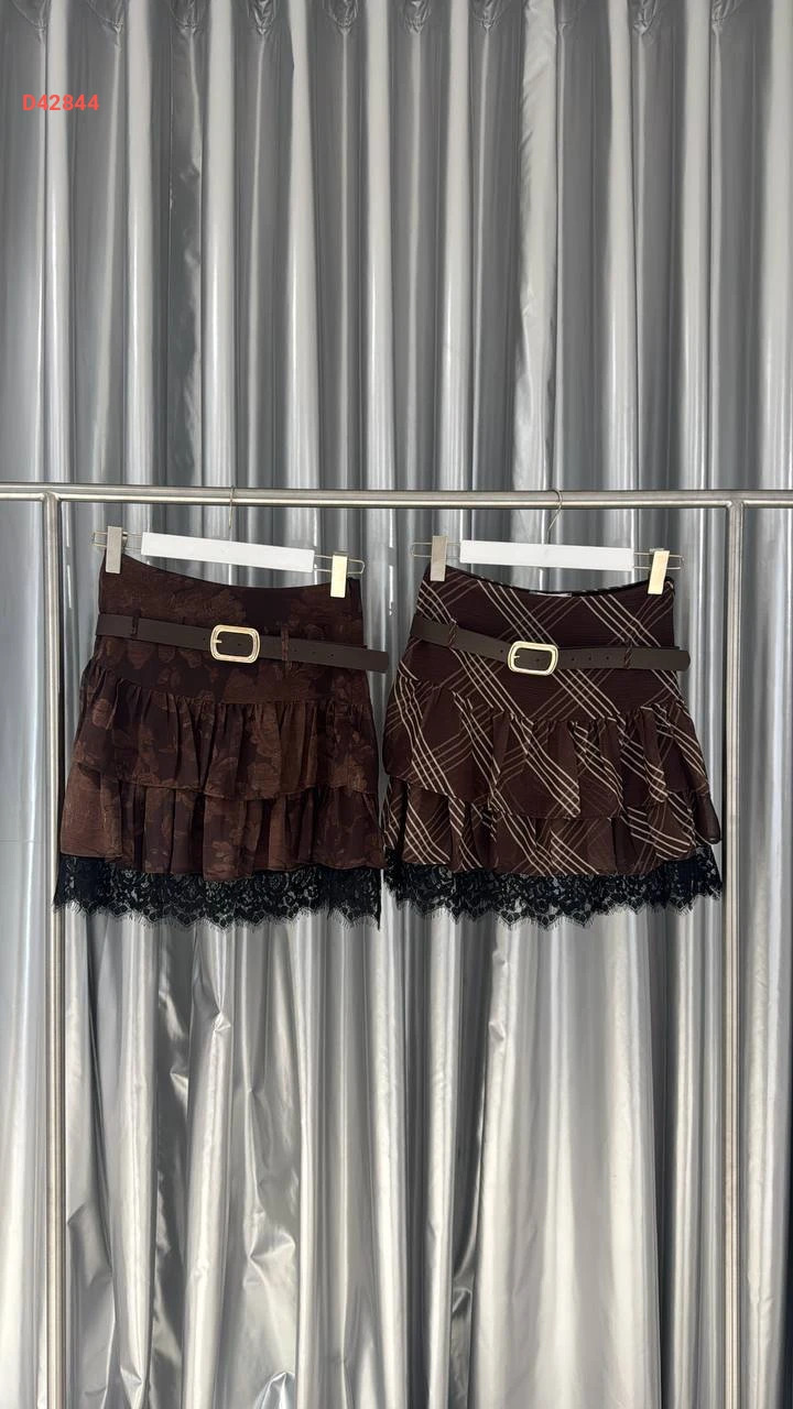تنورة كارو قصيرة كشكش بدانتيل