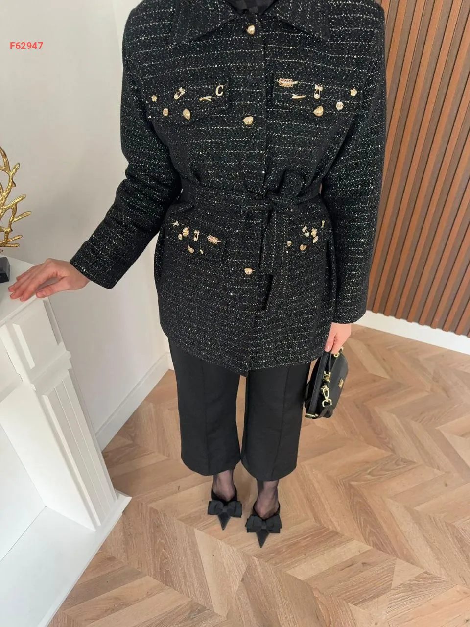 CH_283 AKSESUAR DETAYLİ SİMLİ TÜVİT CHANEL CEKETİMİZ SİYAH VE KREM RENKLERİ İLE SİZLERLE 2 S 2 M 1 L BEDEN