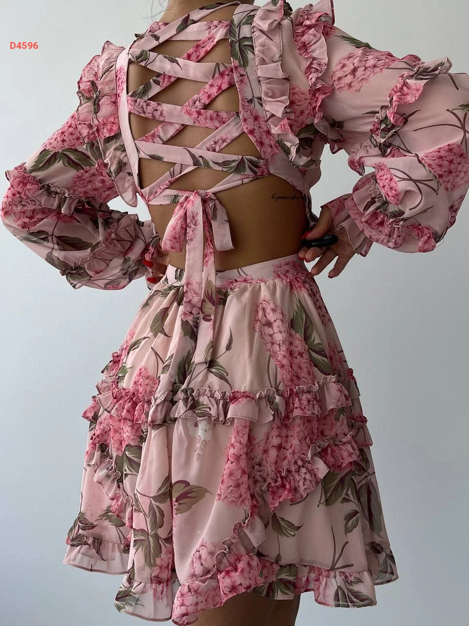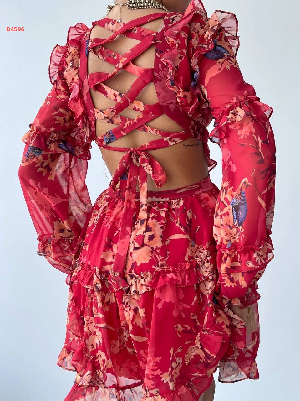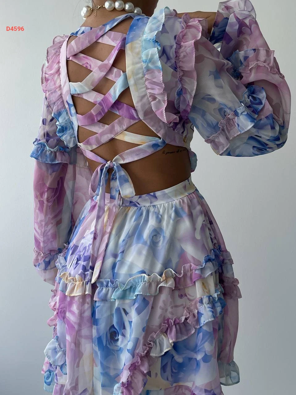 فستان قصير شيفون بربطات خلفية