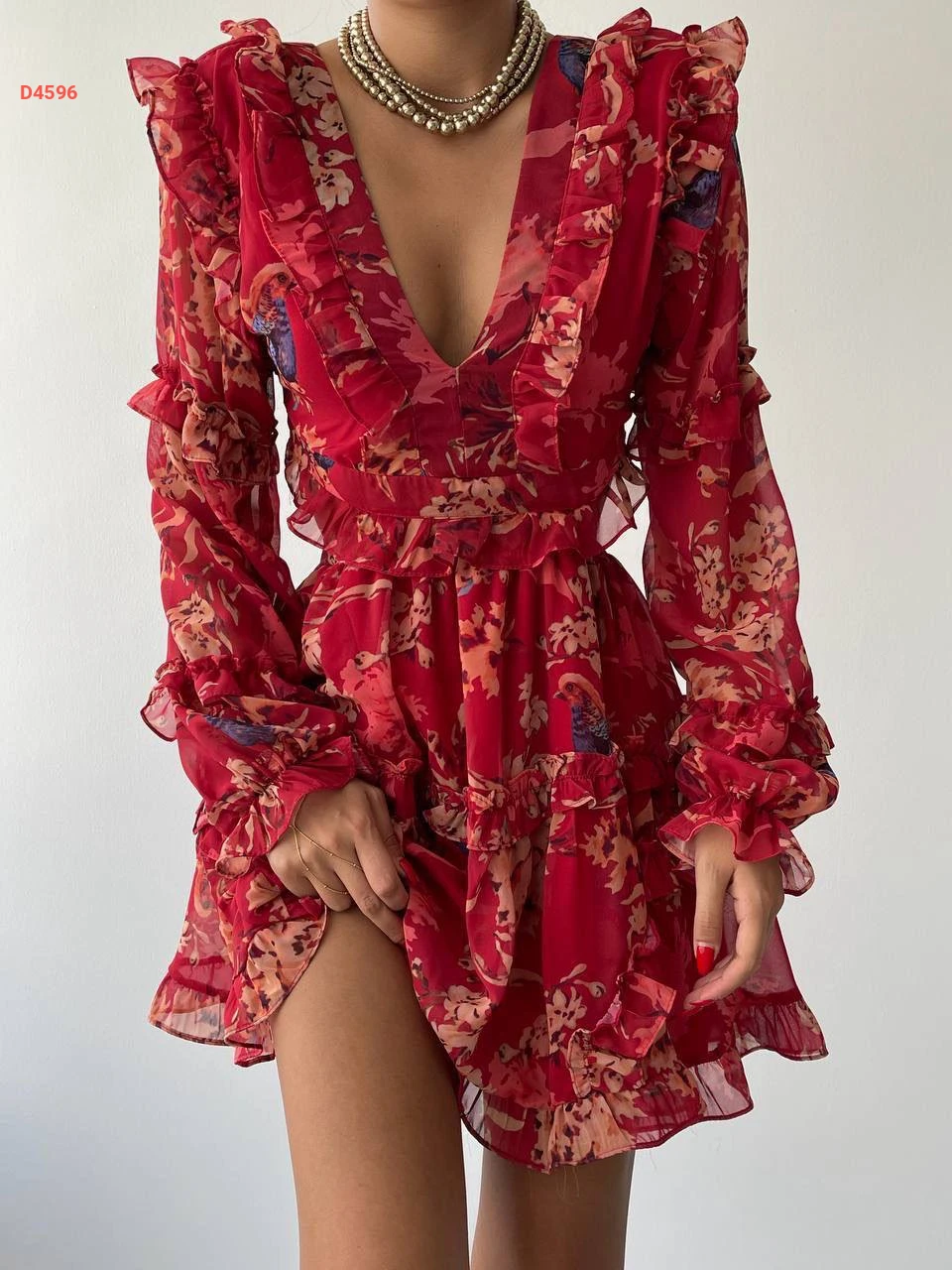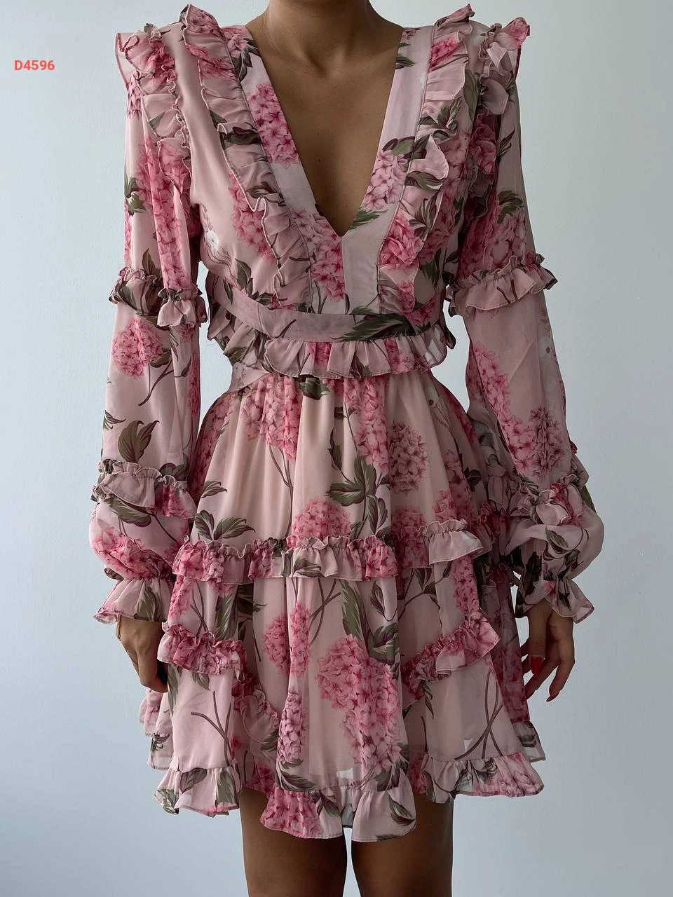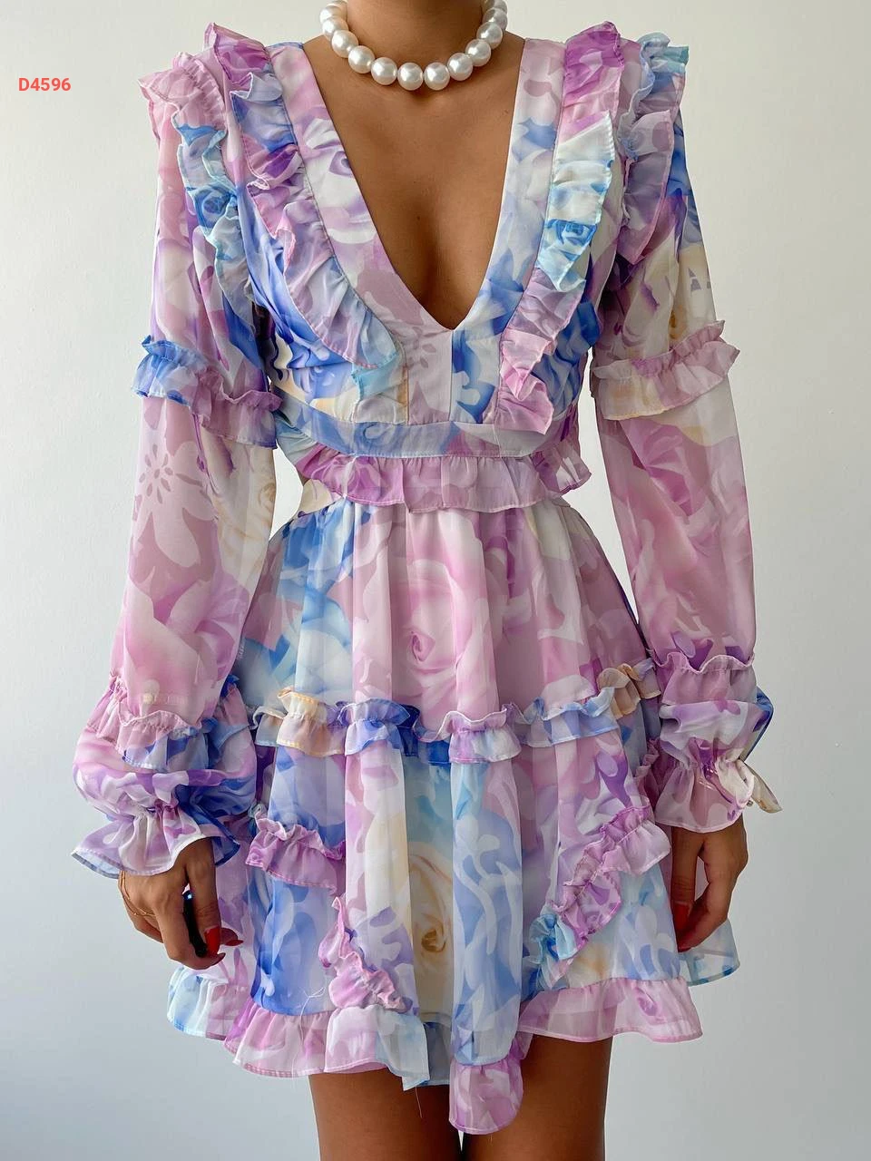 فستان قصير شيفون بربطات خلفية