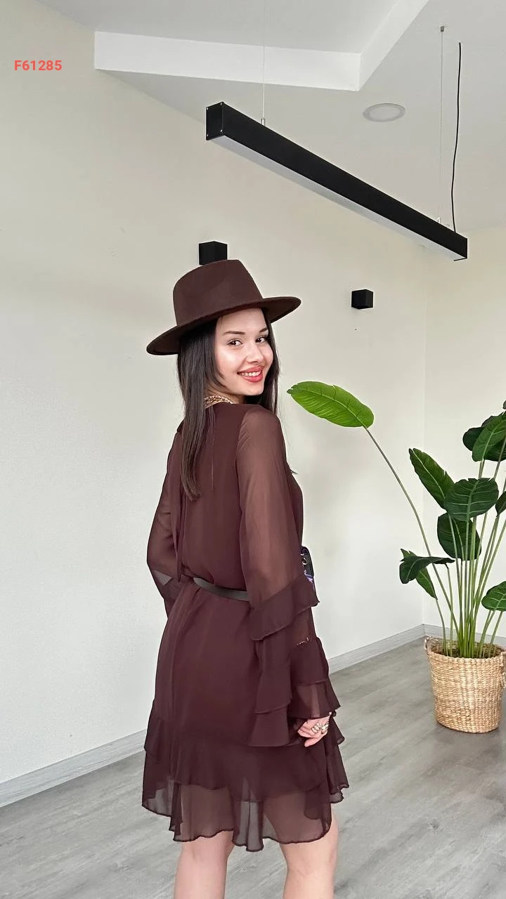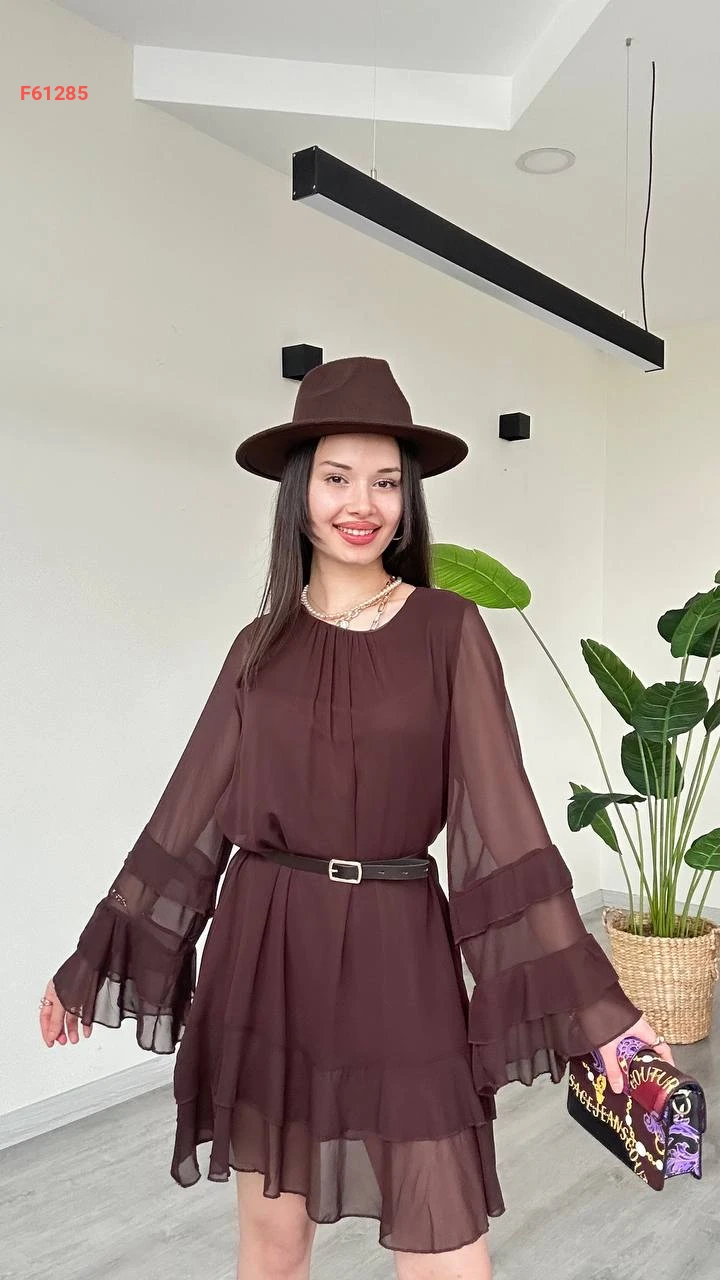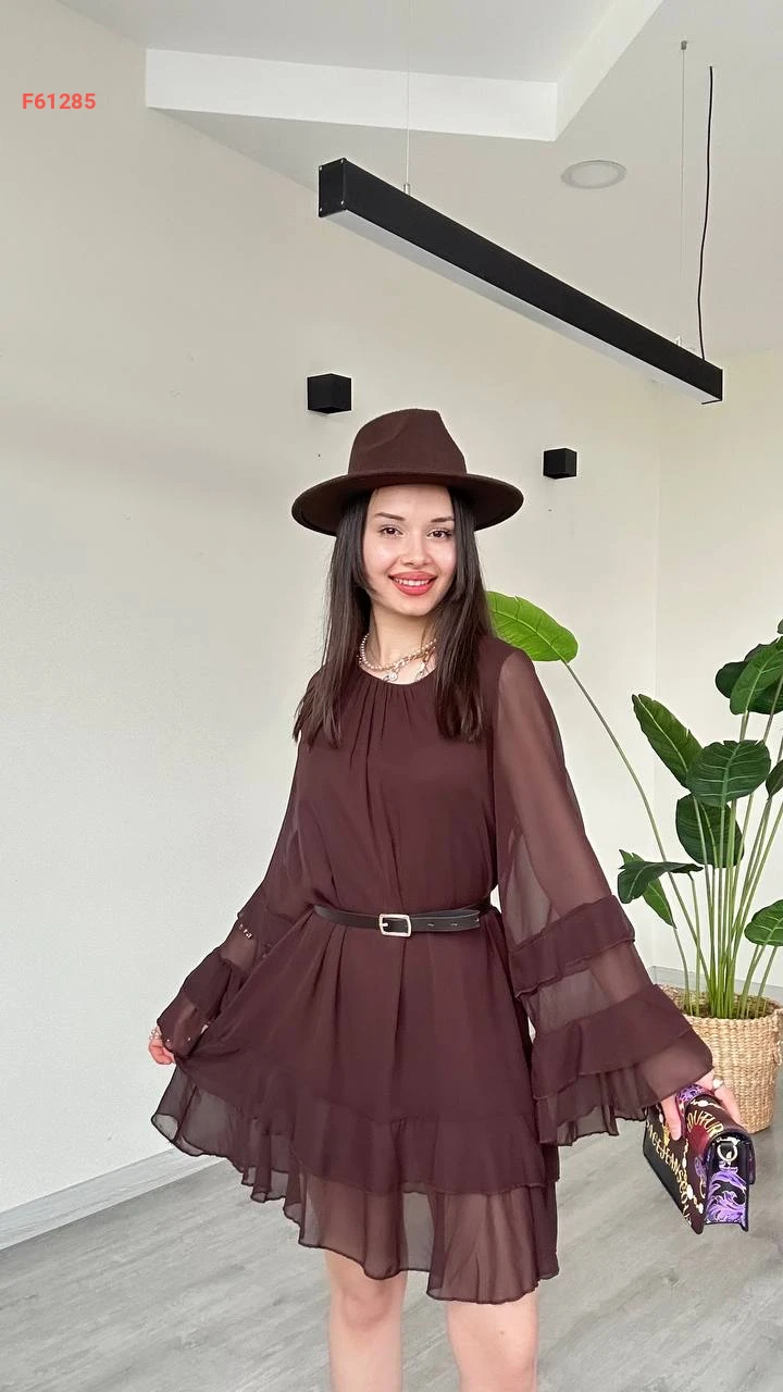 فستان قصير شيفون كشكش