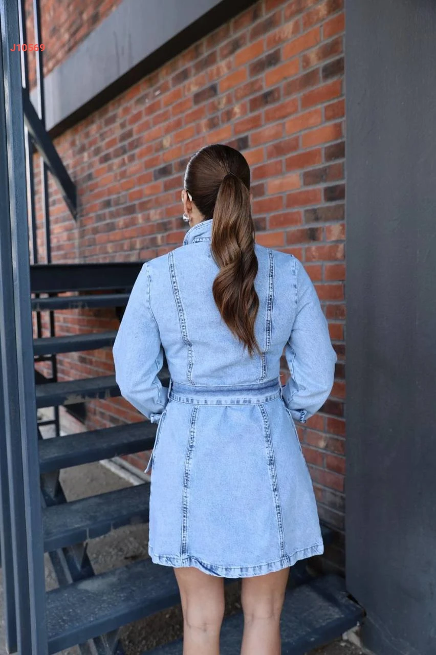 فستان جينز قصير بأزرار وزنار