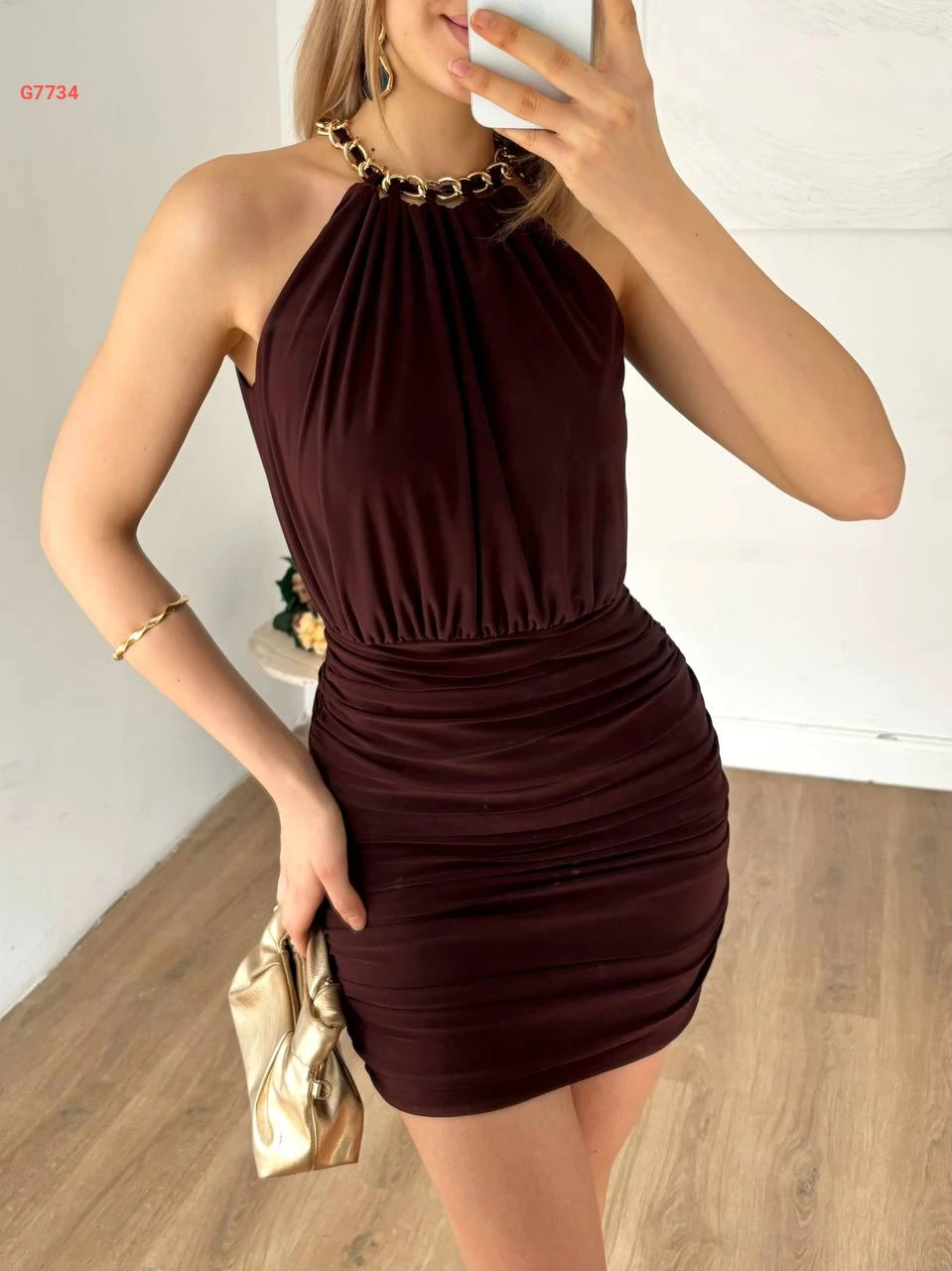 فستان قصير مجمع باكسسوار عالرقبة