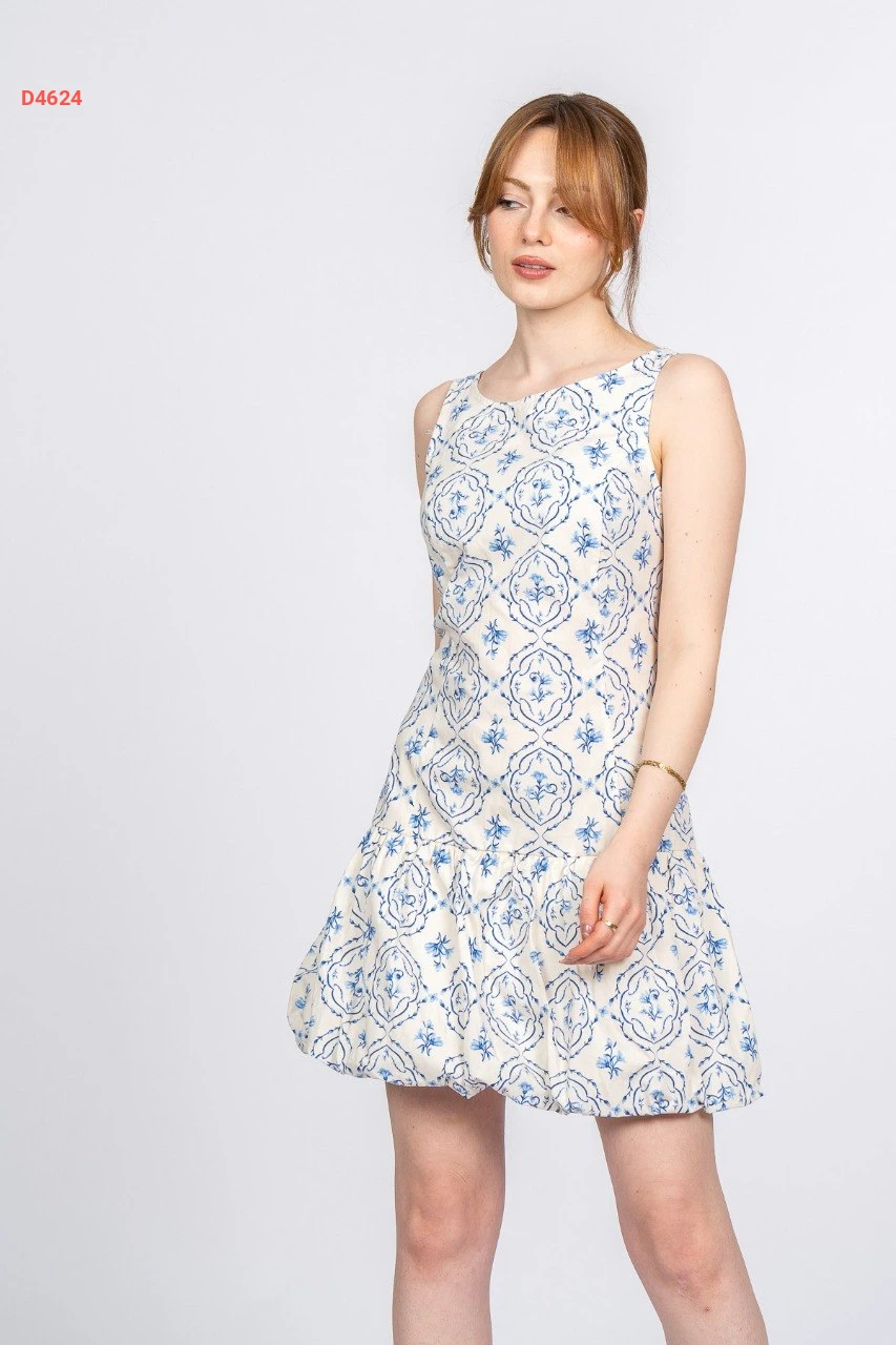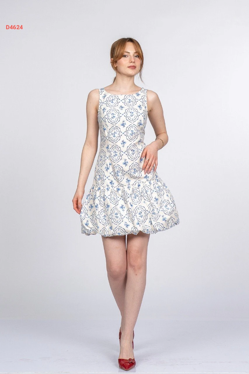فستان قصير بالون منقوش