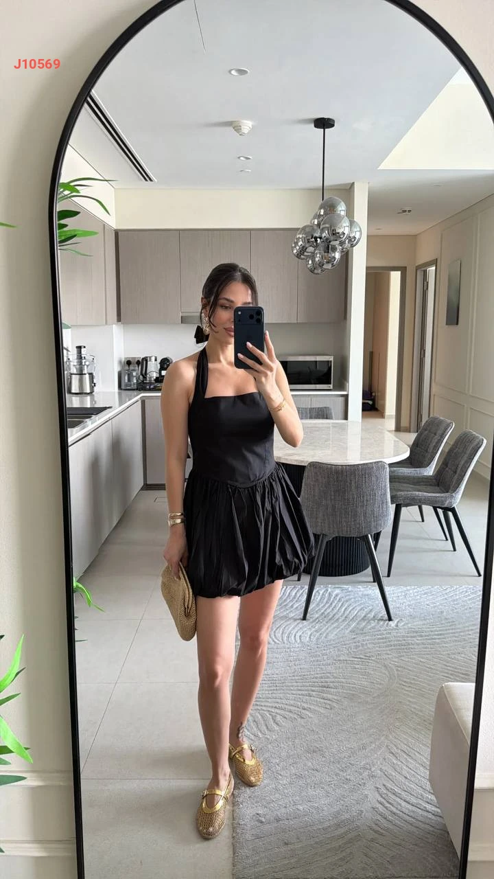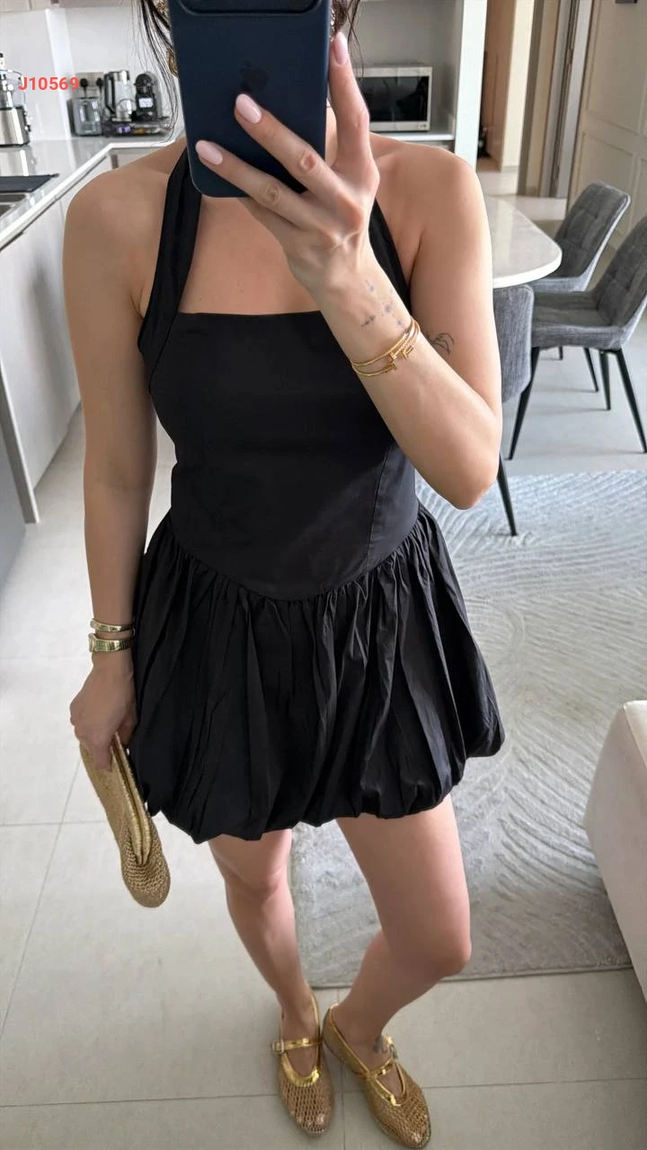 فستان قصير بالون بظهر مكشوف