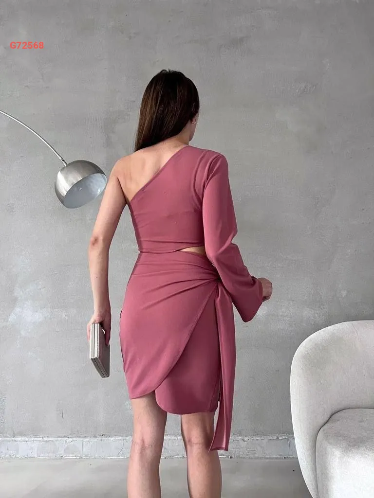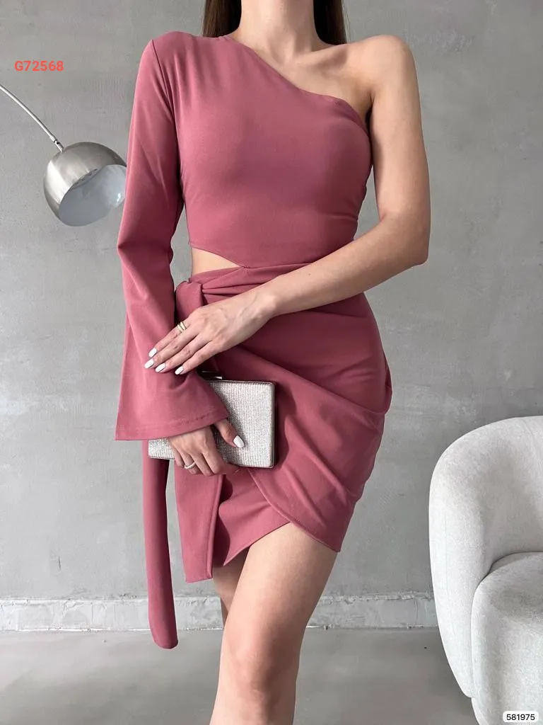 فستان قصير بربطة وكتف مكشوف