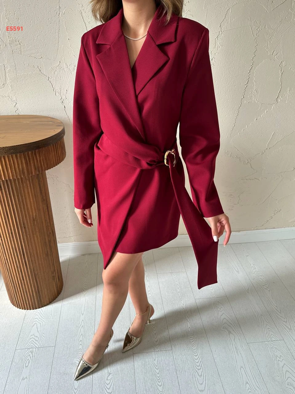 فستان قصير بتفاصيل بليزر وإبزيم