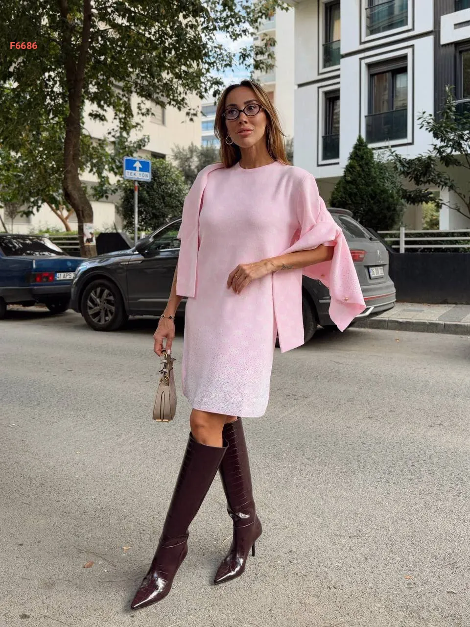 طقم تريكو ماركة فستان قصير مع جاكيت