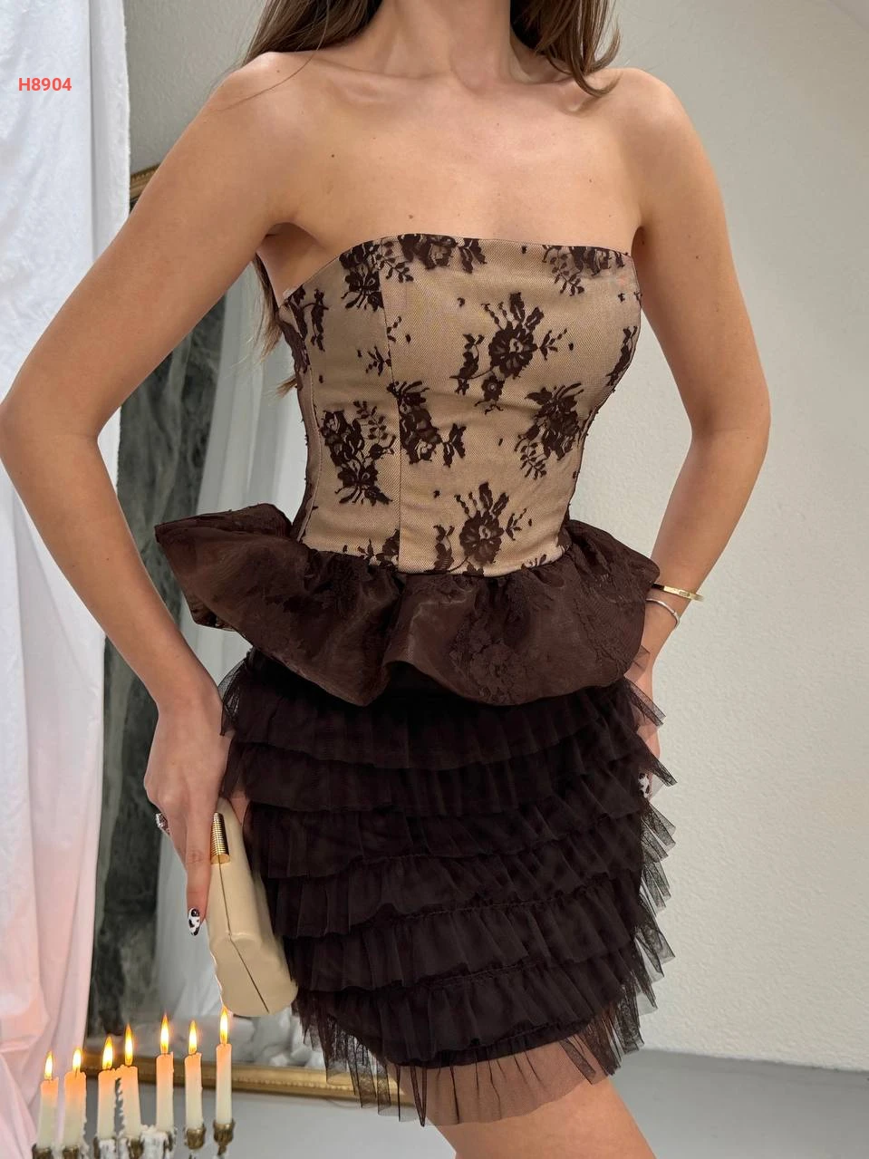 فستان قصير cut تول كشكش مطرز