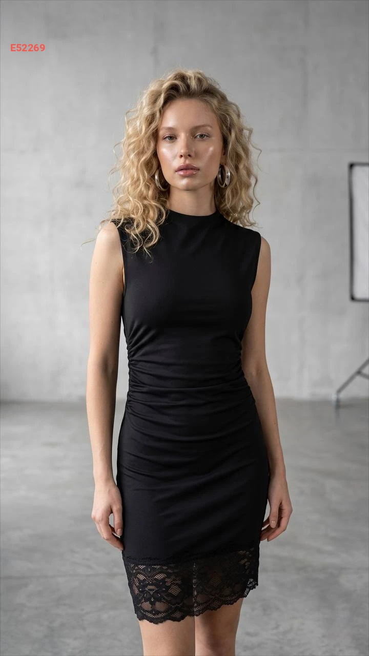 فستان قصير حفر مع دانتيل