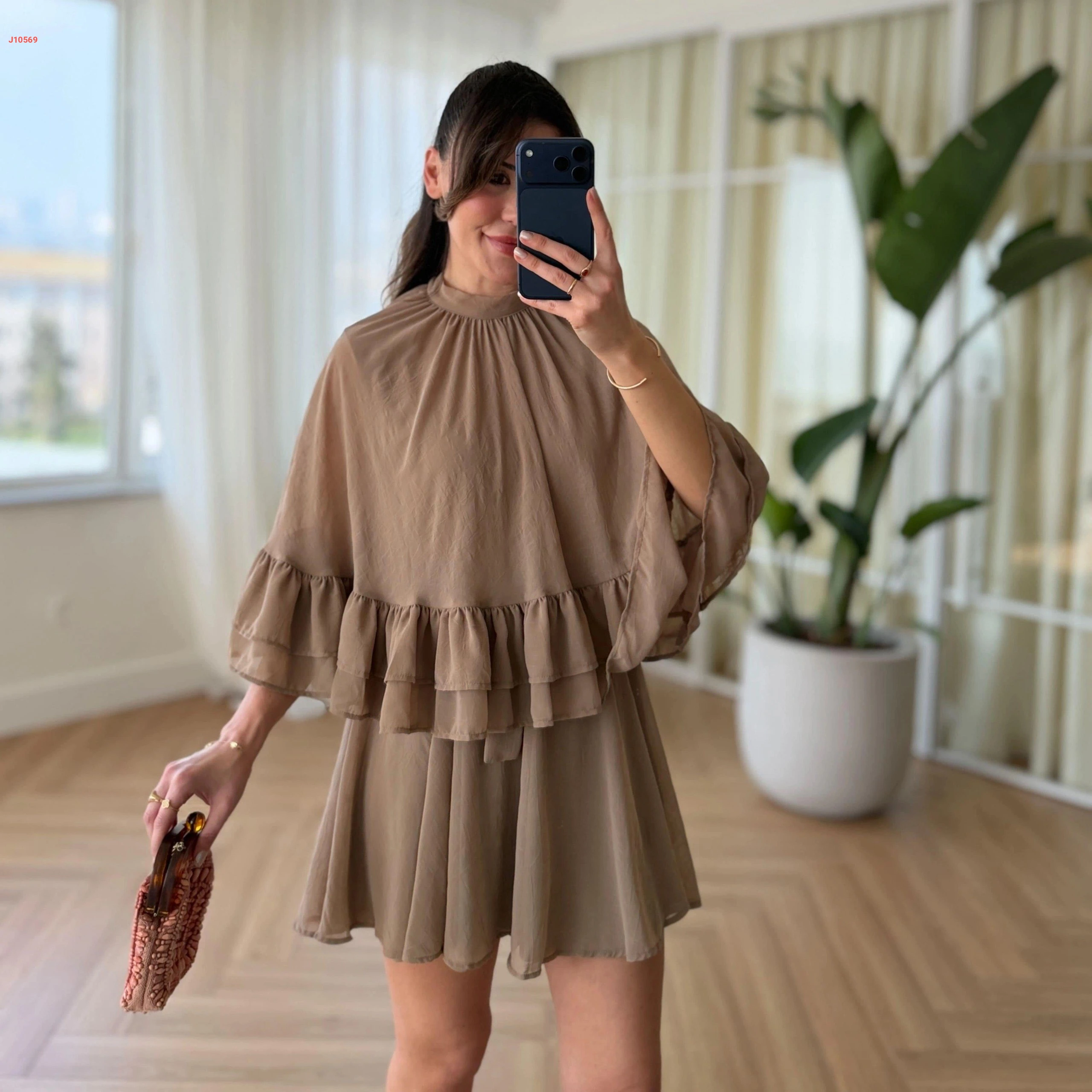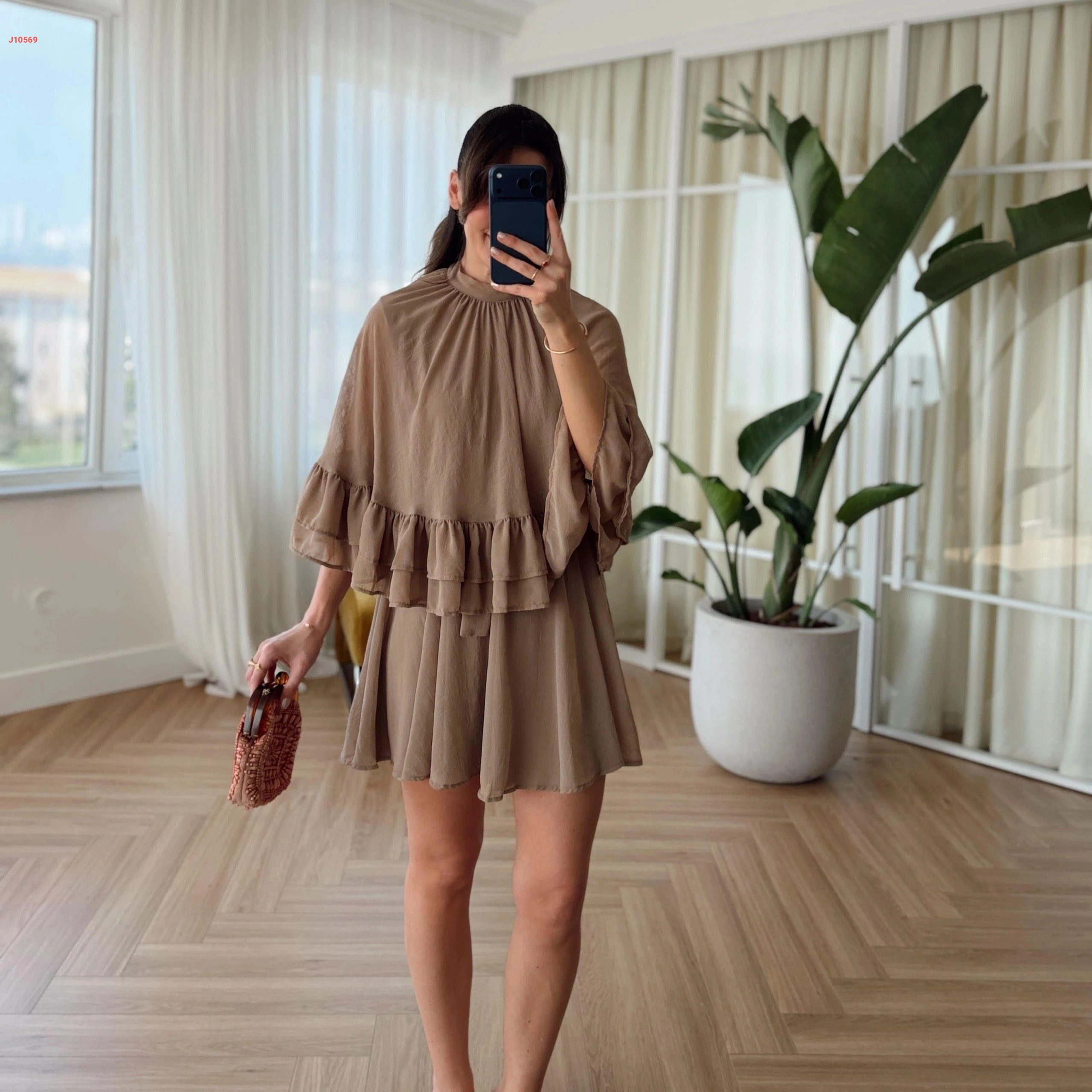 فستان قصير حفر مع بلوزة كشكش