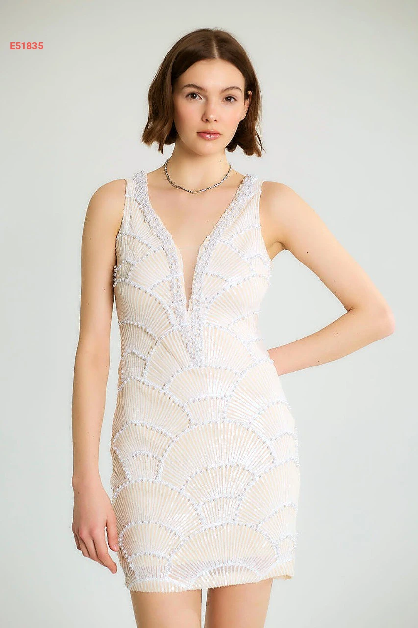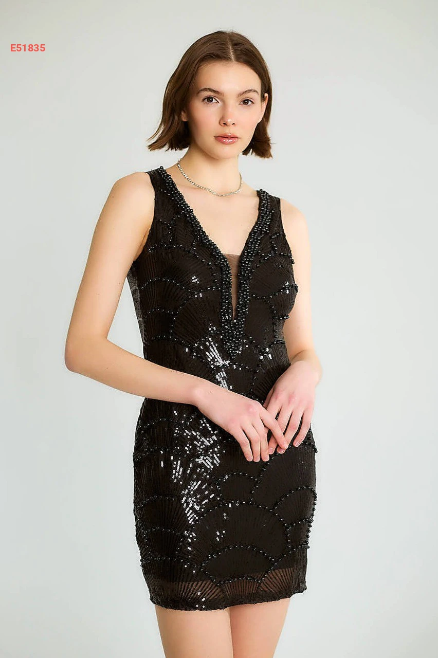 فستان قصير باييت مطرز باللولو
