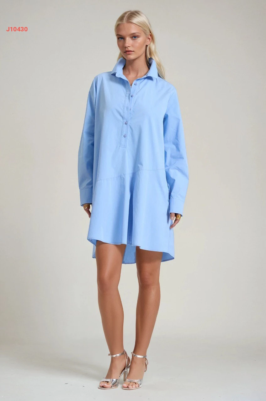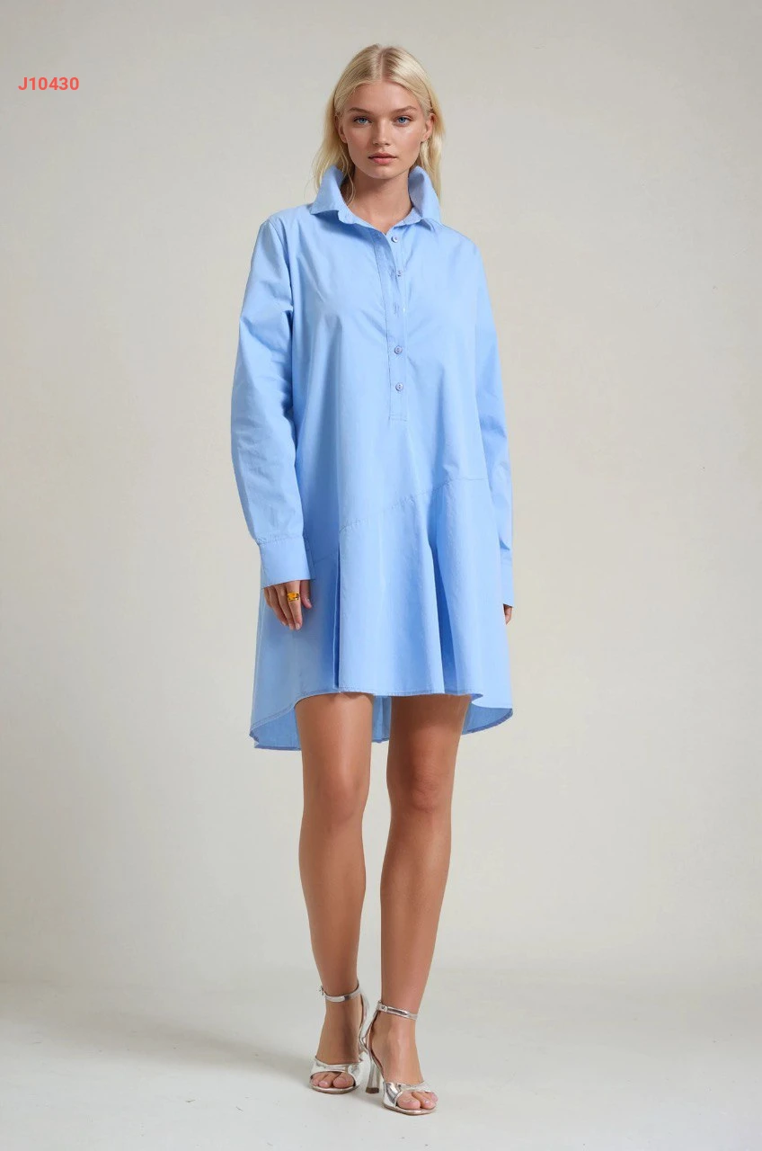 فستان قصير بتفاصيل قميص