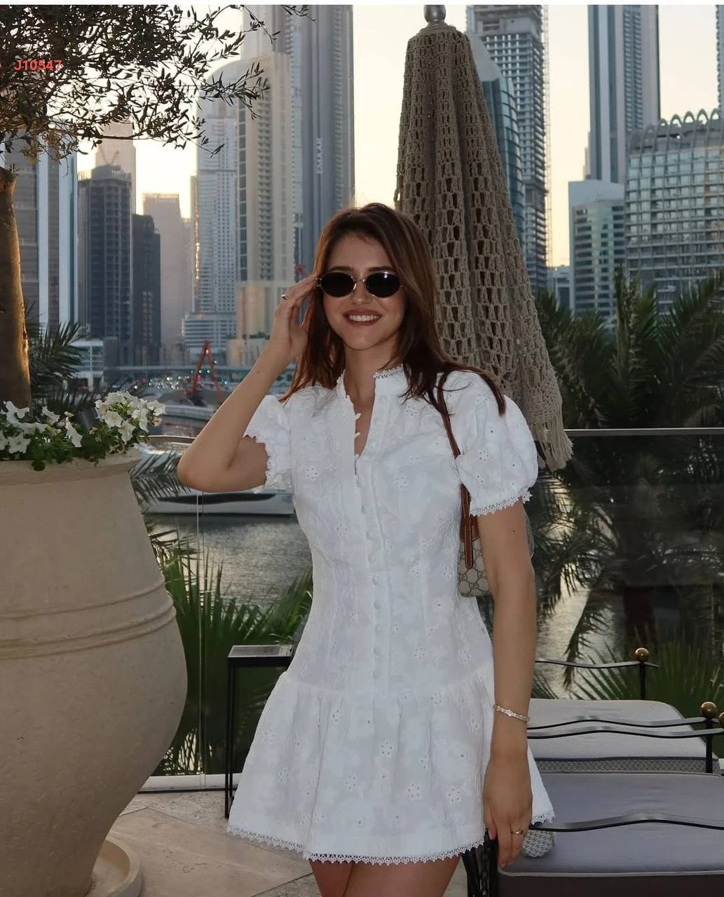 فستان قصير فوال مطرز بأزرار