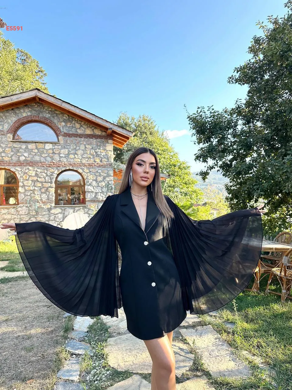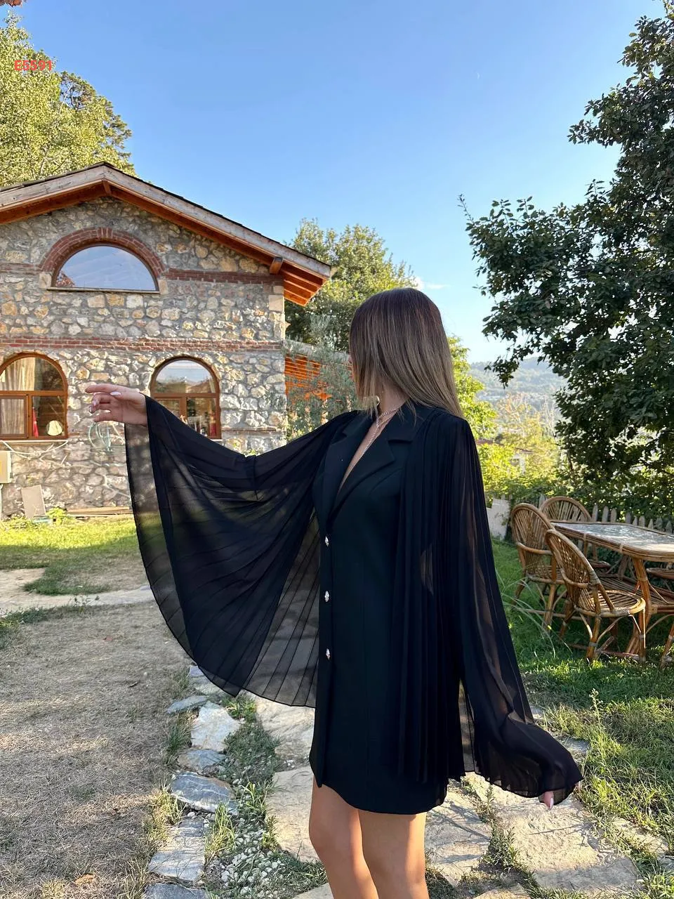 فستان رسمي قصير بأكمام شيفون مكسرة