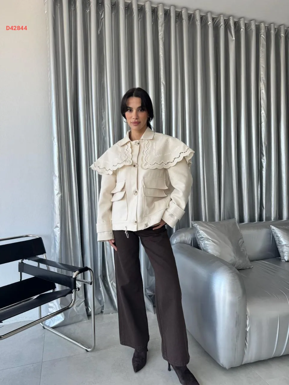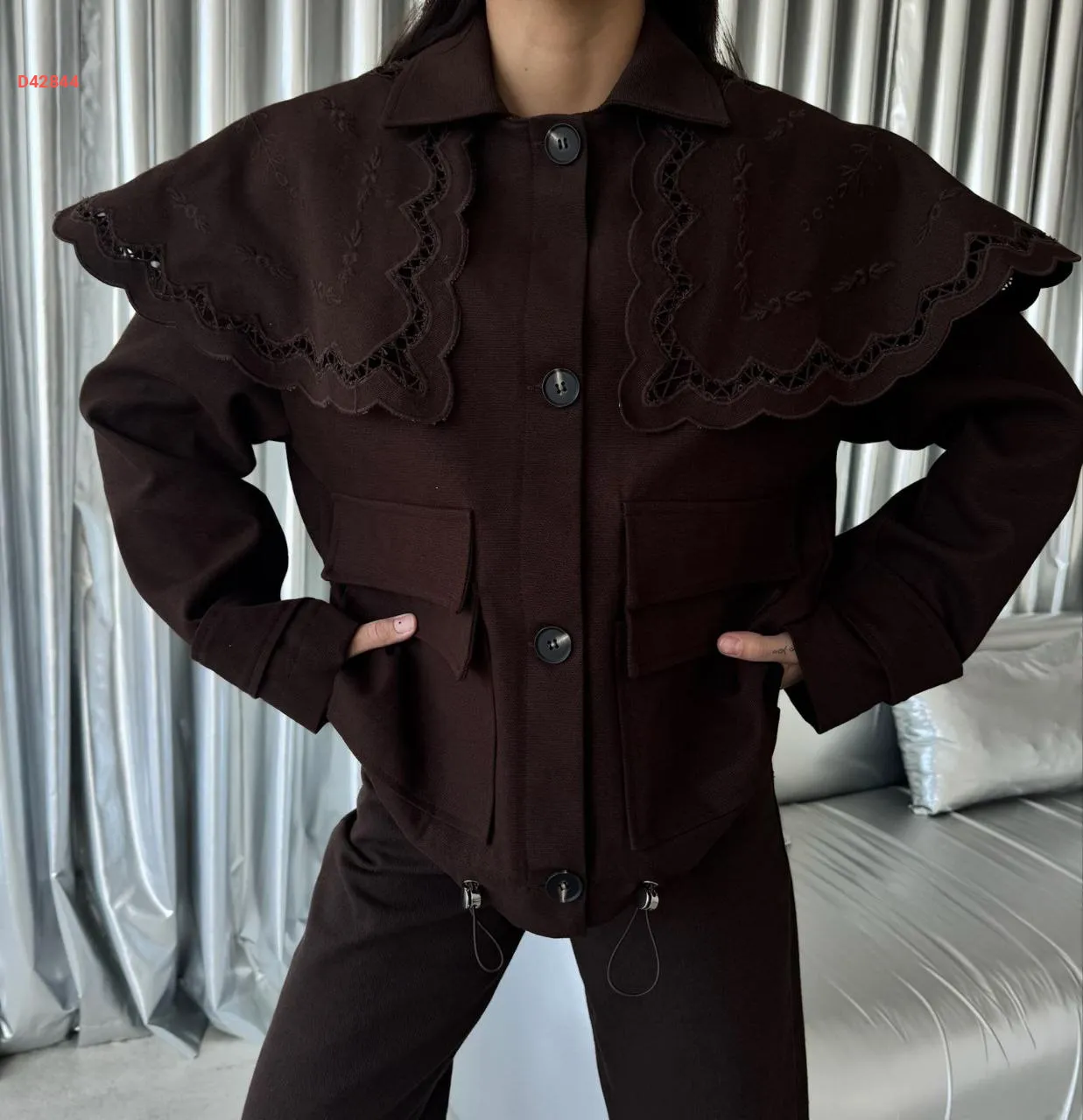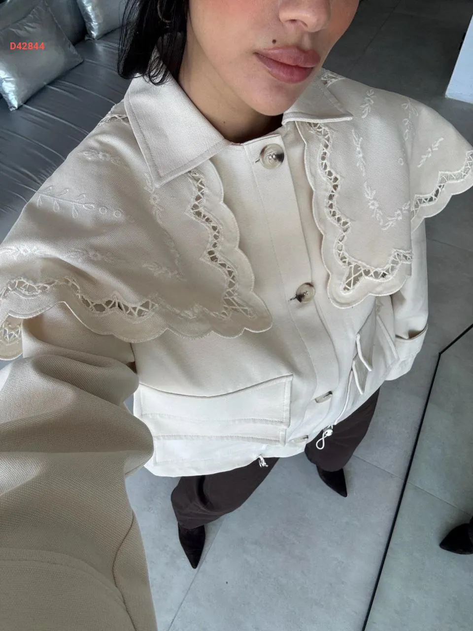 جاكيت قصير بتفاصيل مطرزة عالكتف