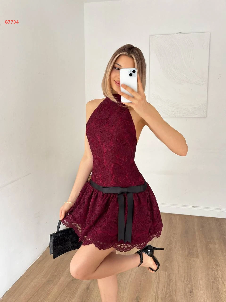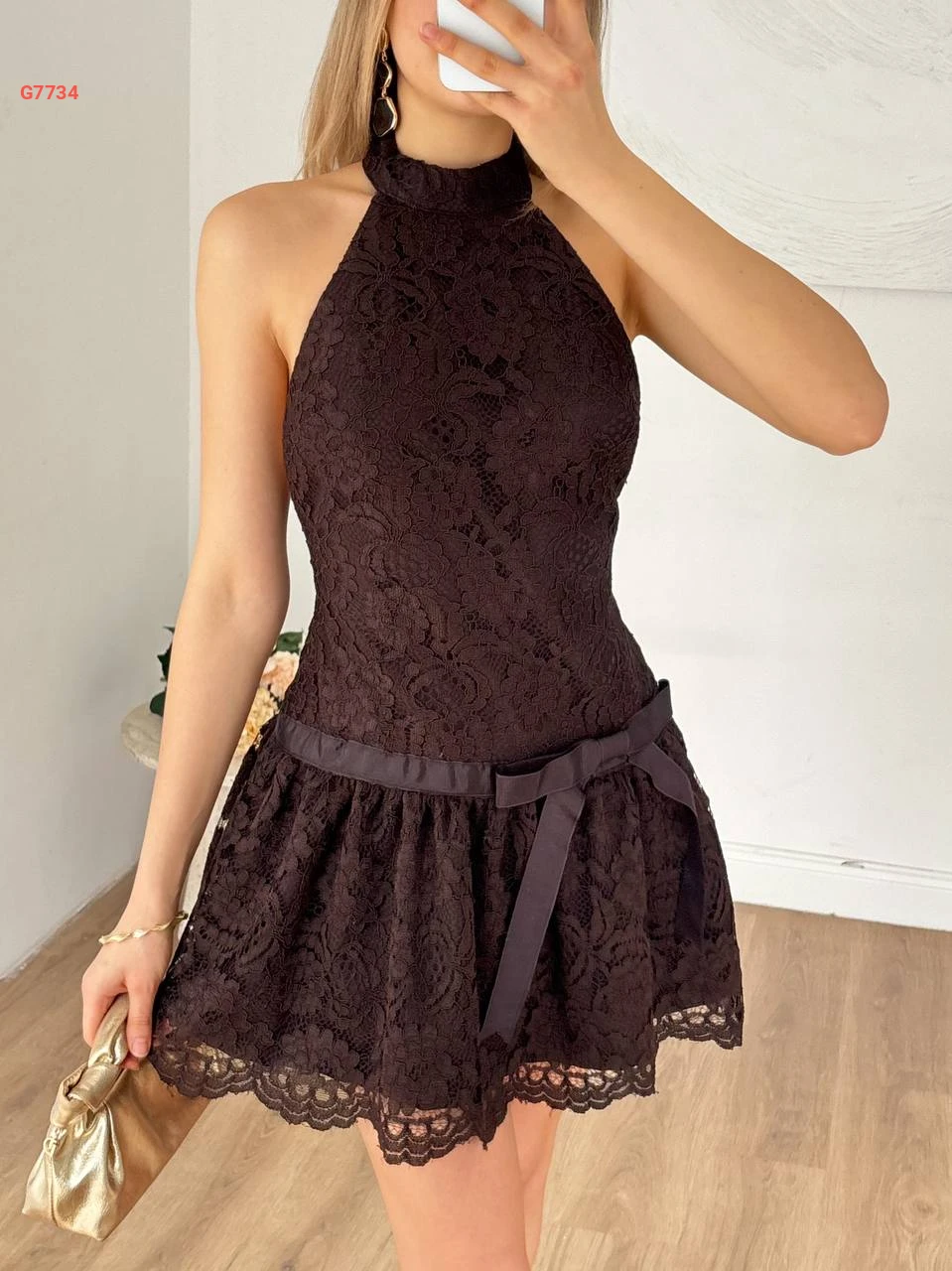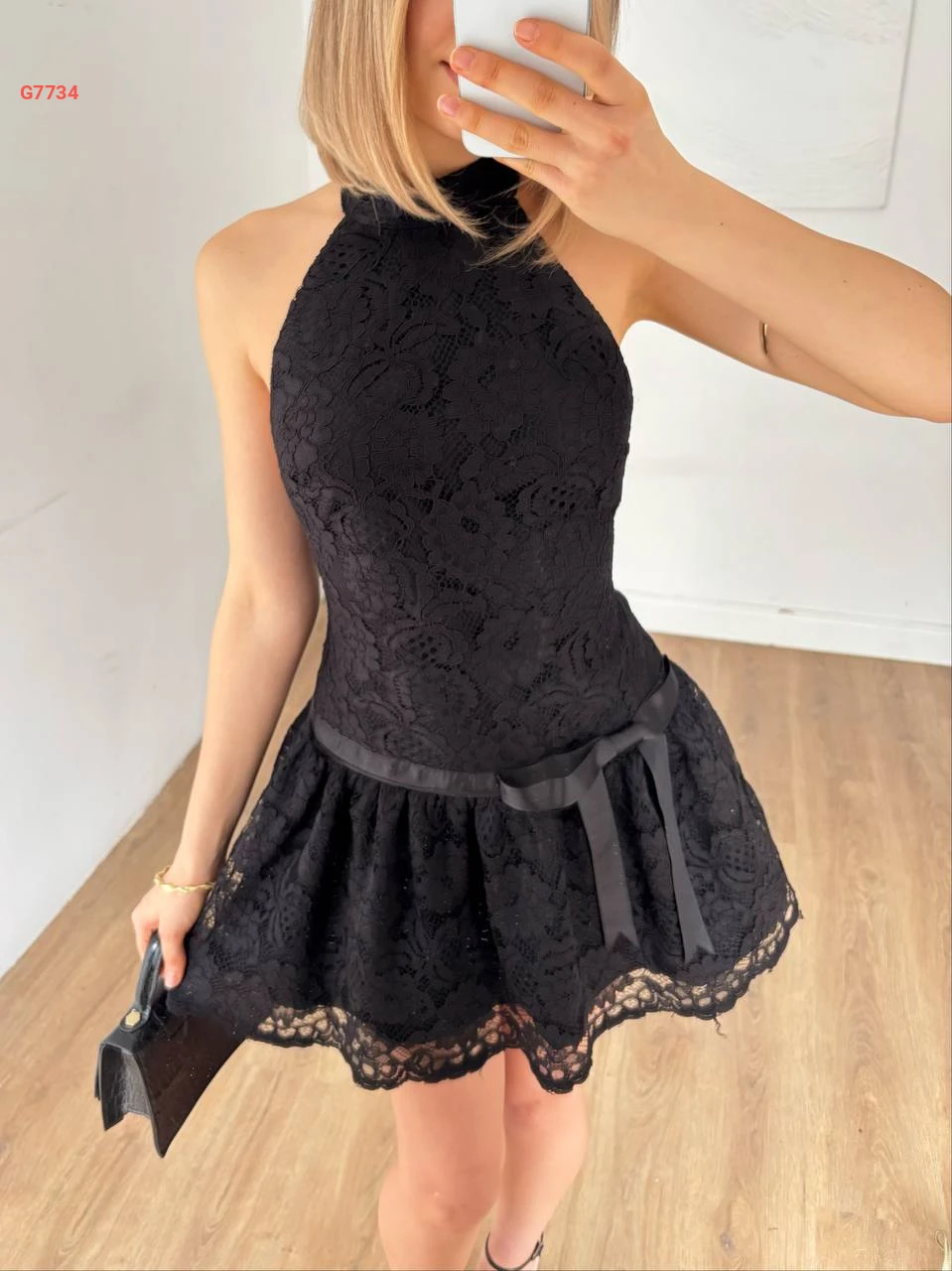 فستان قصير دانتيل كلوش بظهر مكشوف
