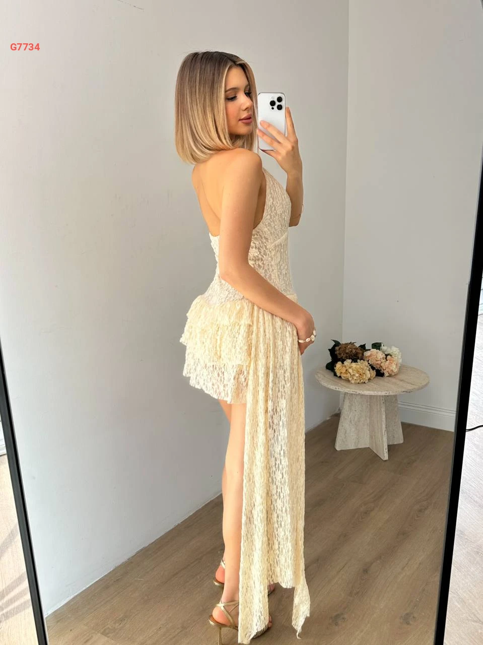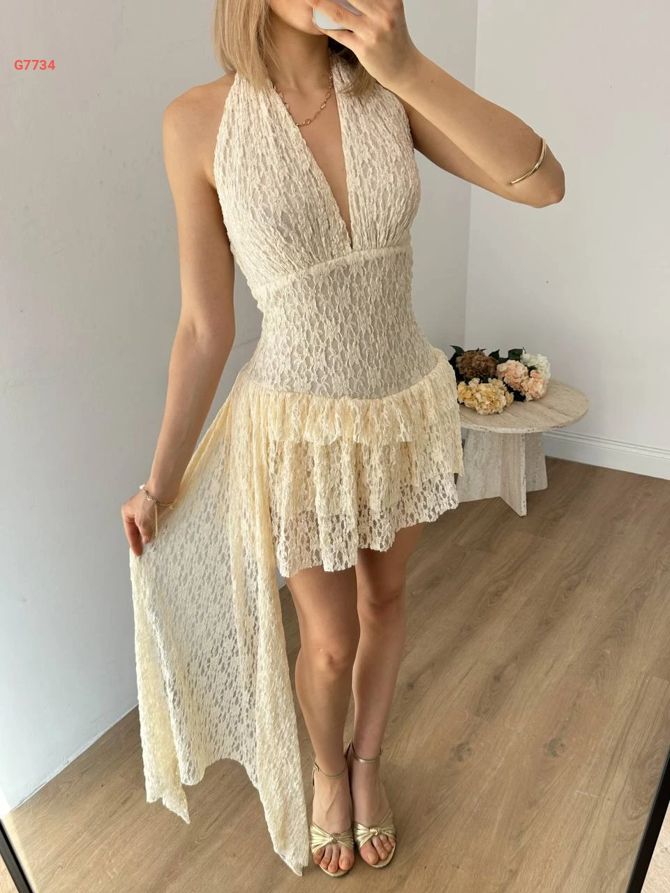 فستان قصير دانتيل كشكش