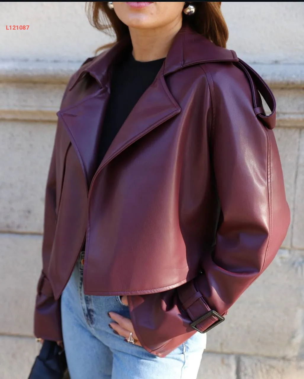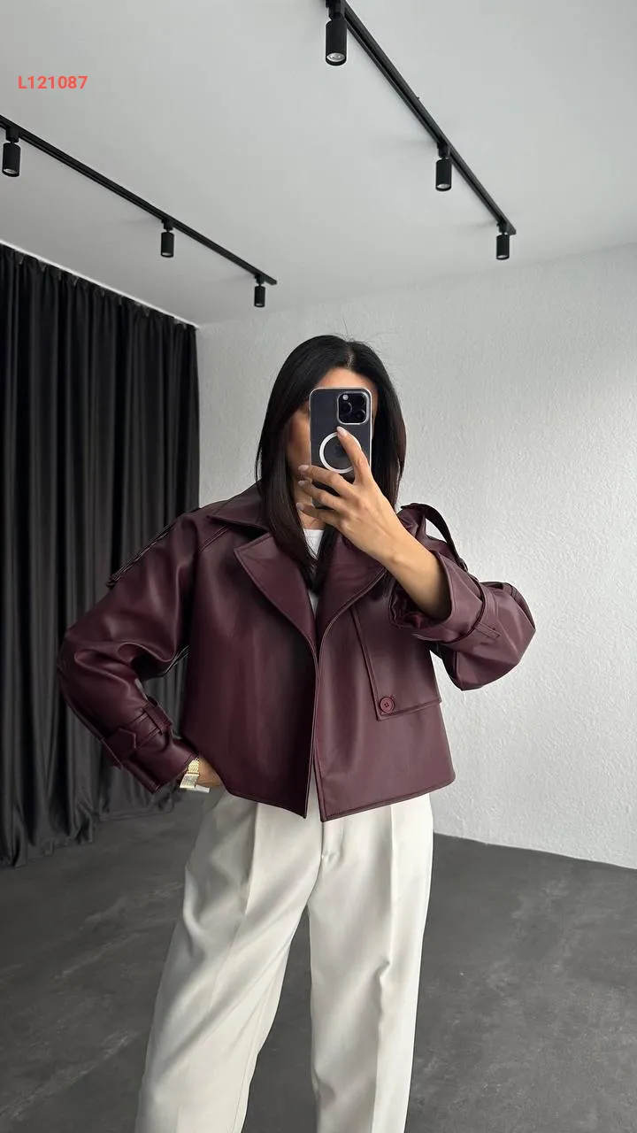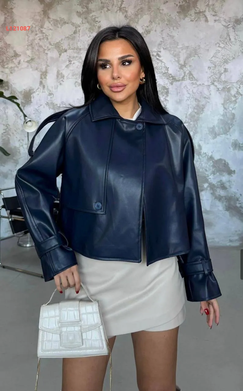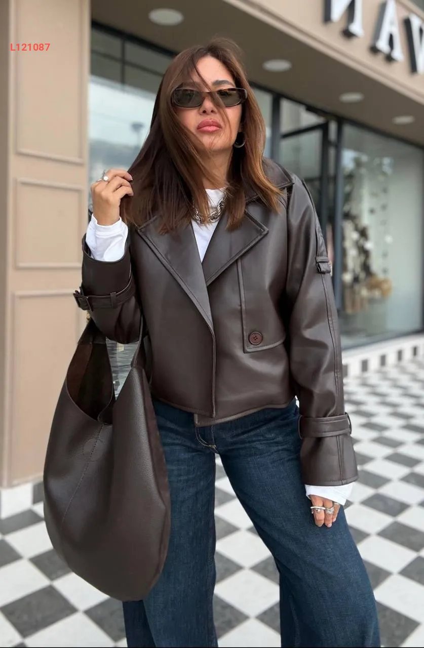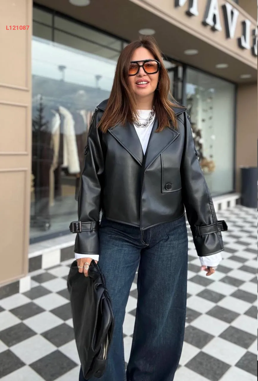 جاكيت جلد قصير بزر واحد