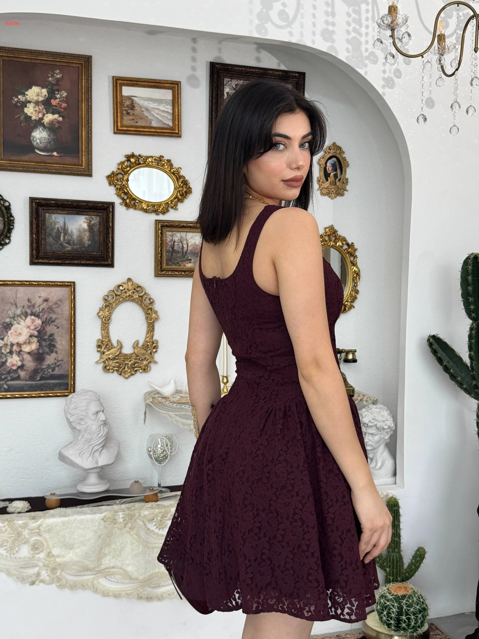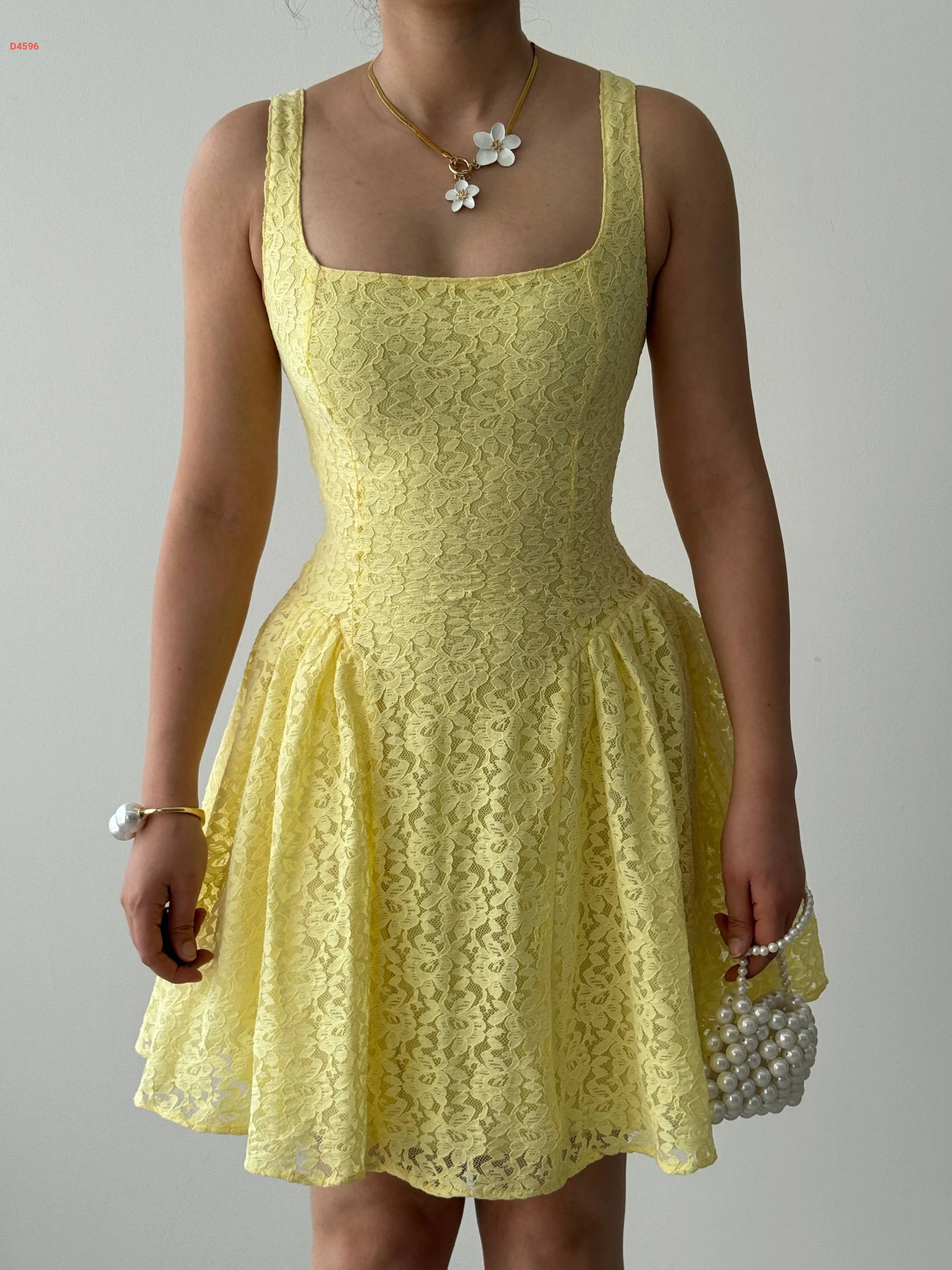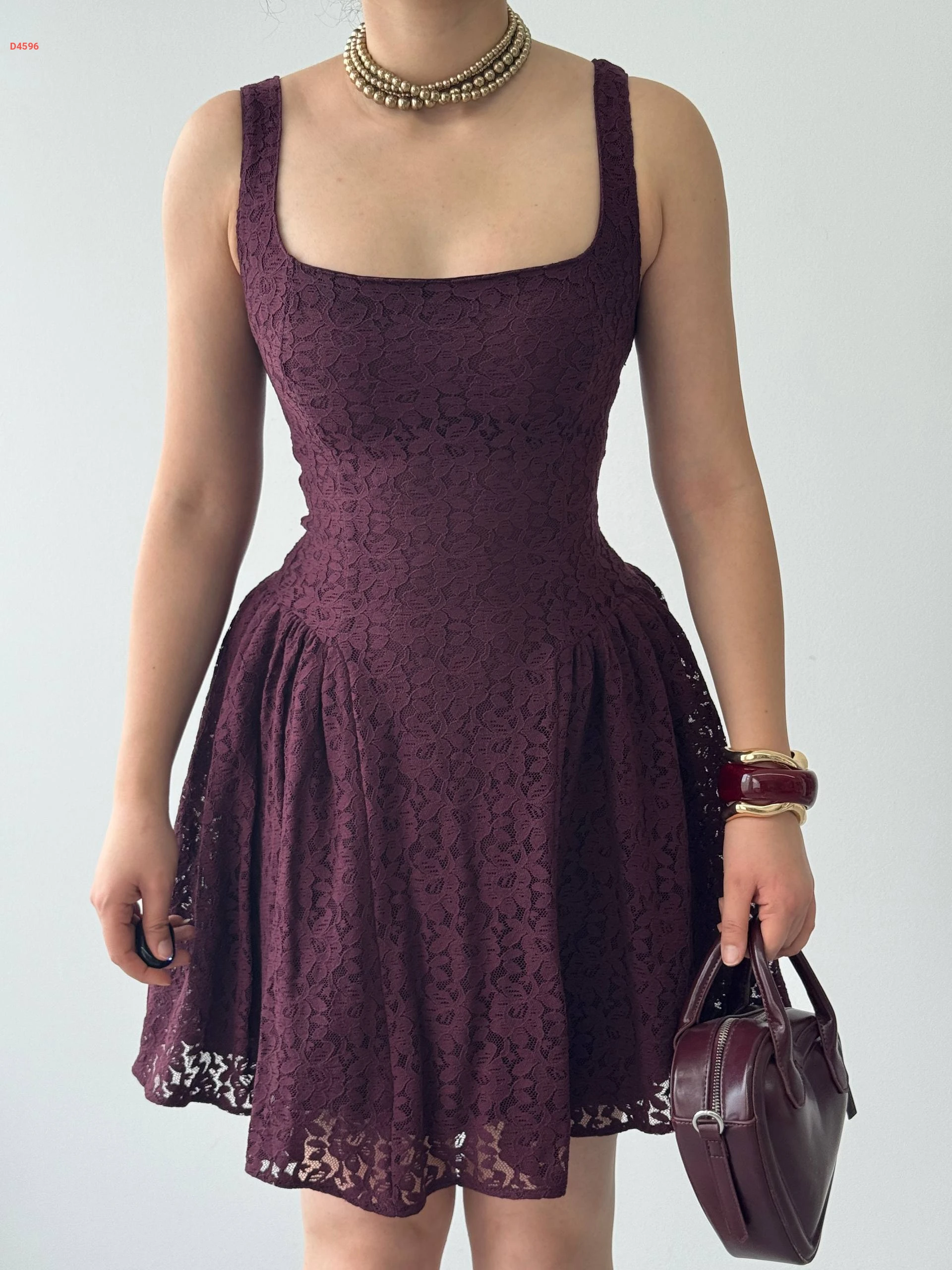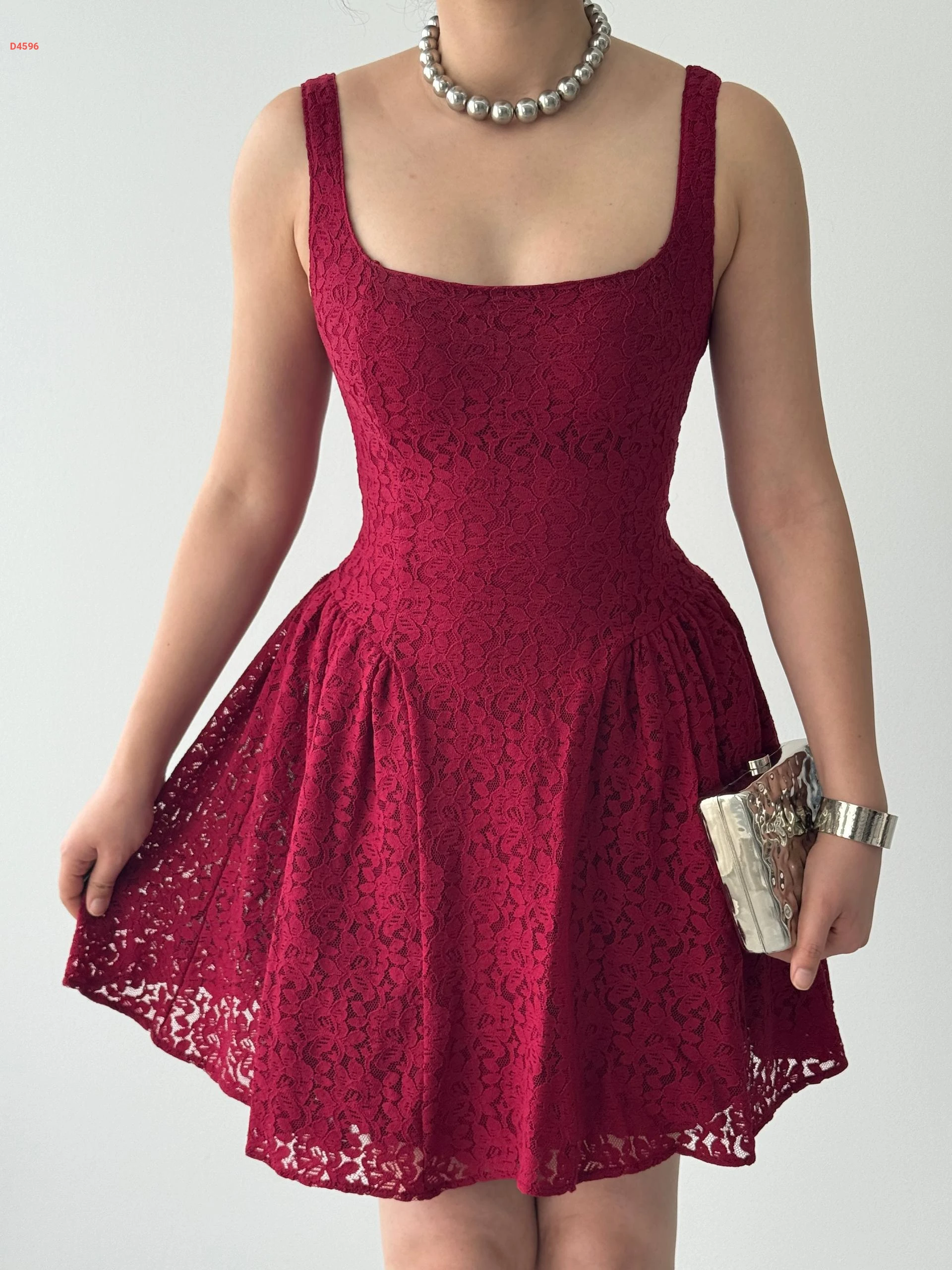 فستان قصير دانتيل كلوش مبطن