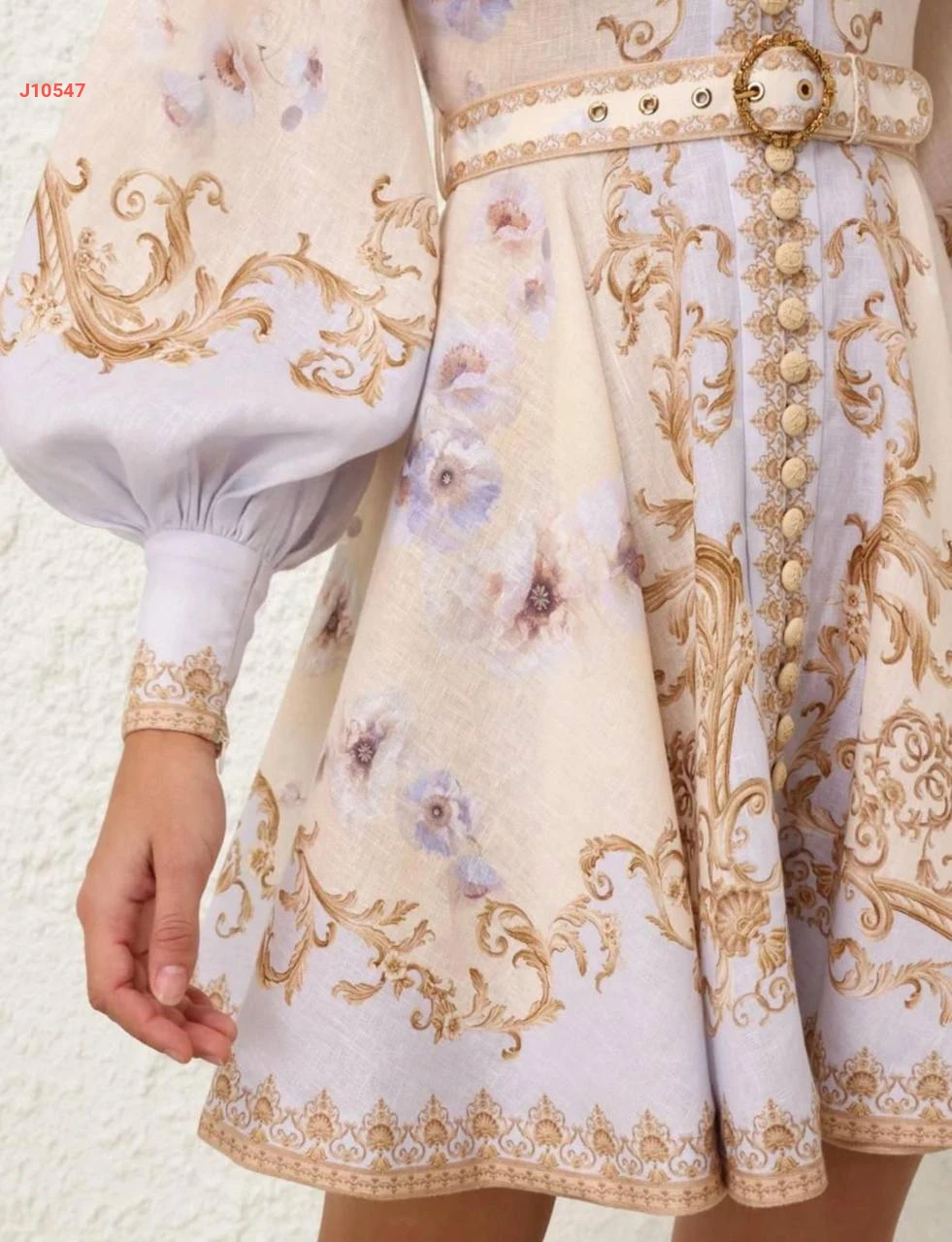 فستان قصير منقوش بأزرار وحزام