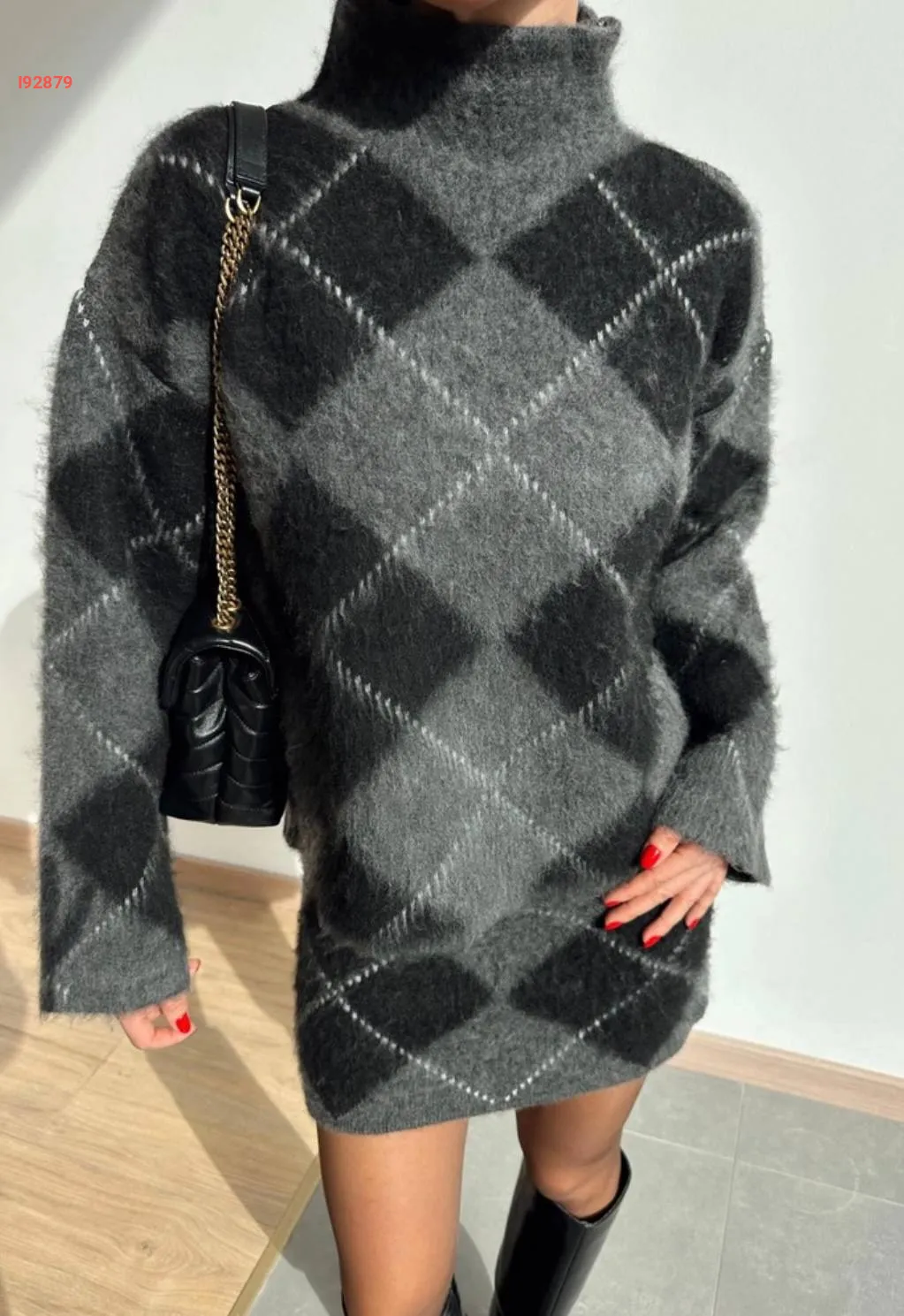 فستان تريكو قصير منقوش معينات
