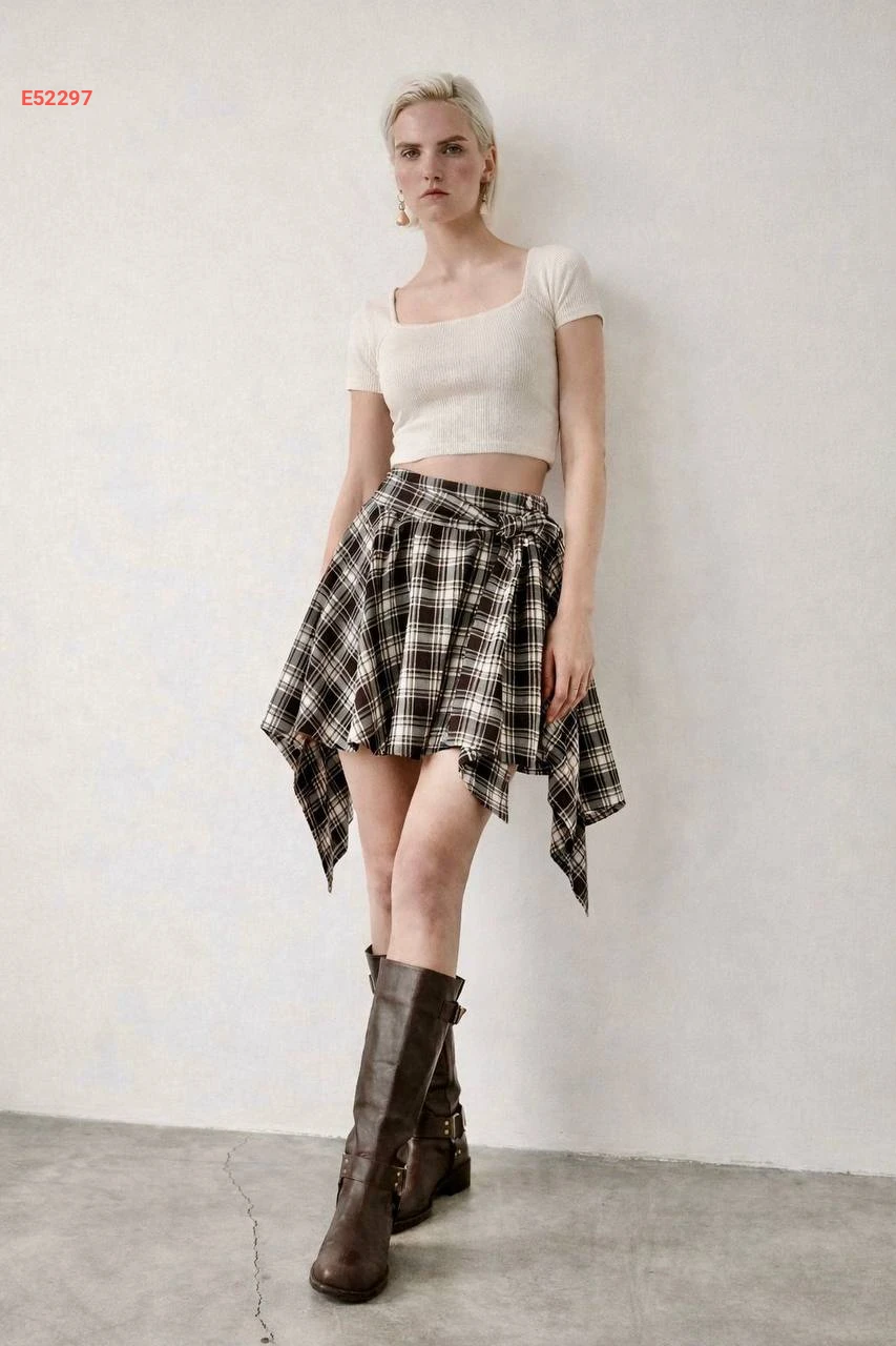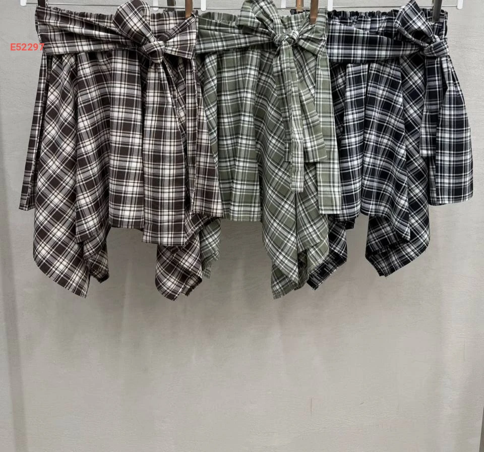 تنورة كارو قصيرة بزنار ربط