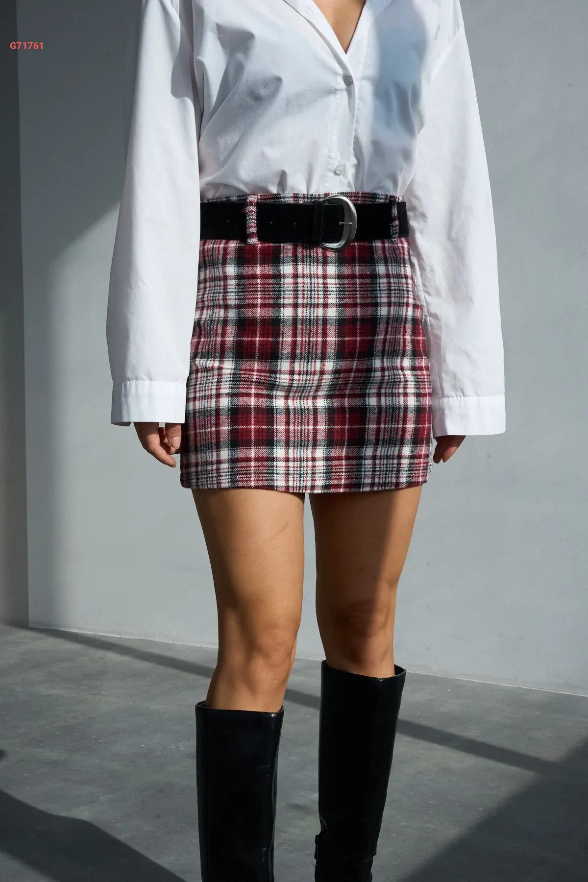 تنورة قصيرة كارو مع حزام