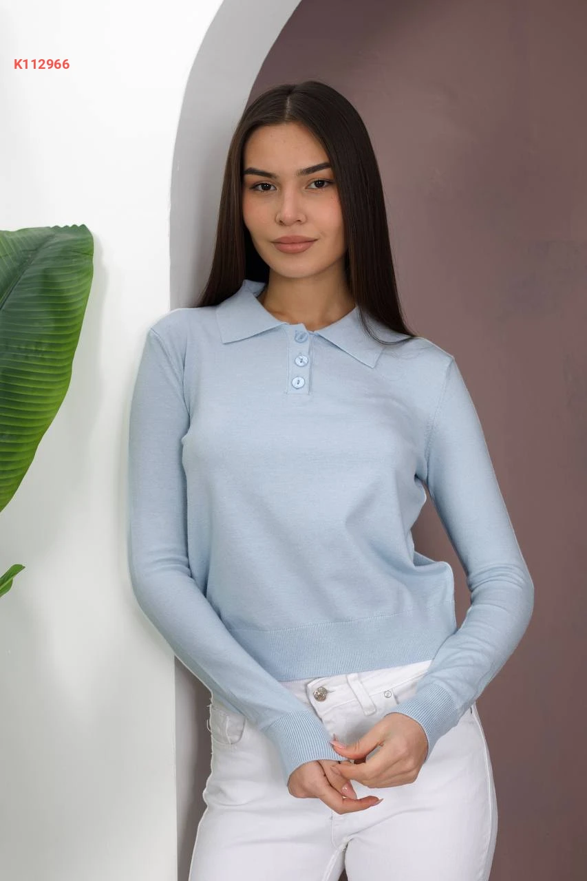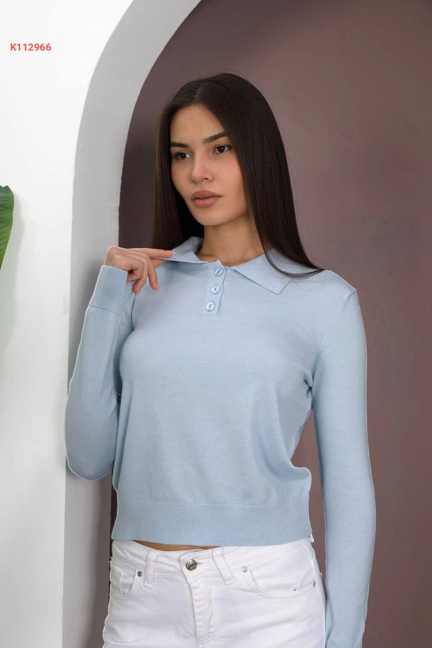 بلوزة قصيرة صوف سادة بياقة قميص