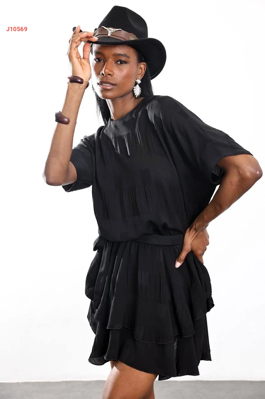 فستان قصير كشكش مع زنار
