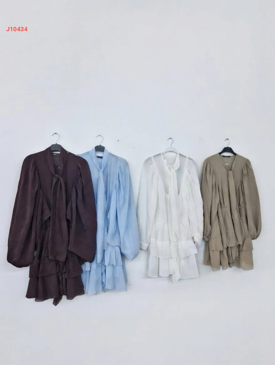 فستان قصير كشكش بأكمام بالونية