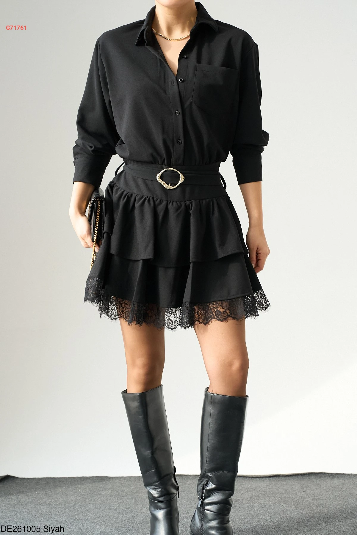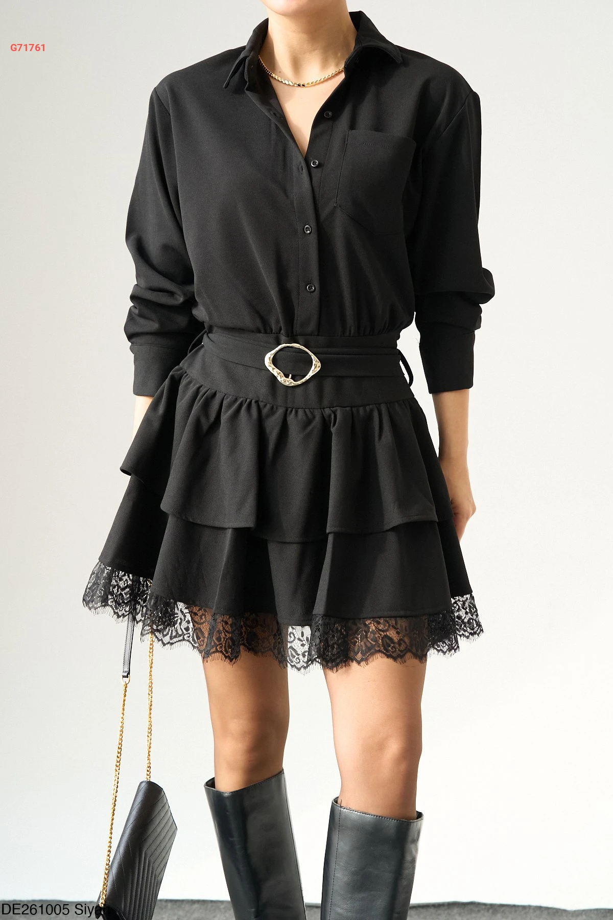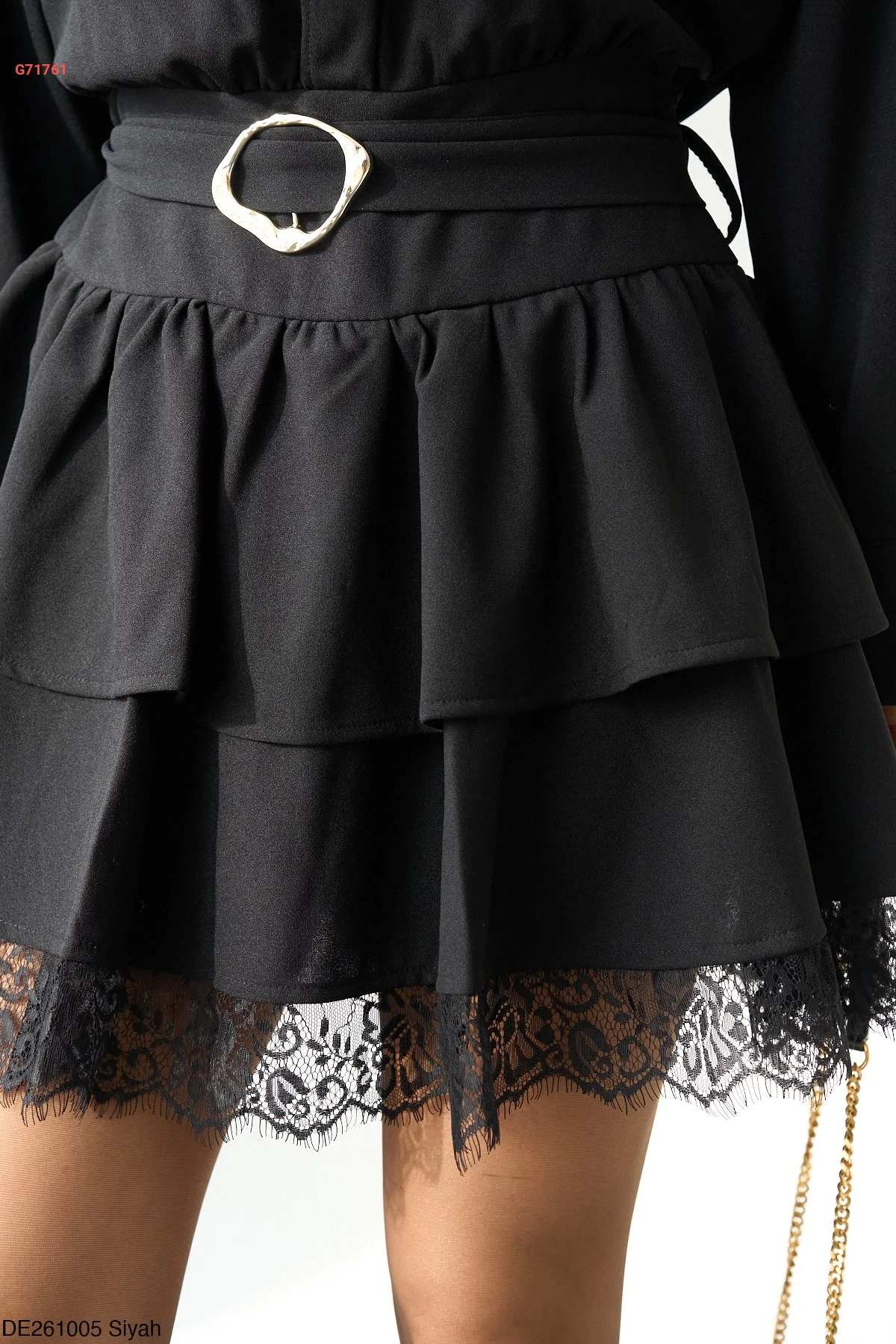 فستان قصير كشكش بدانتيل