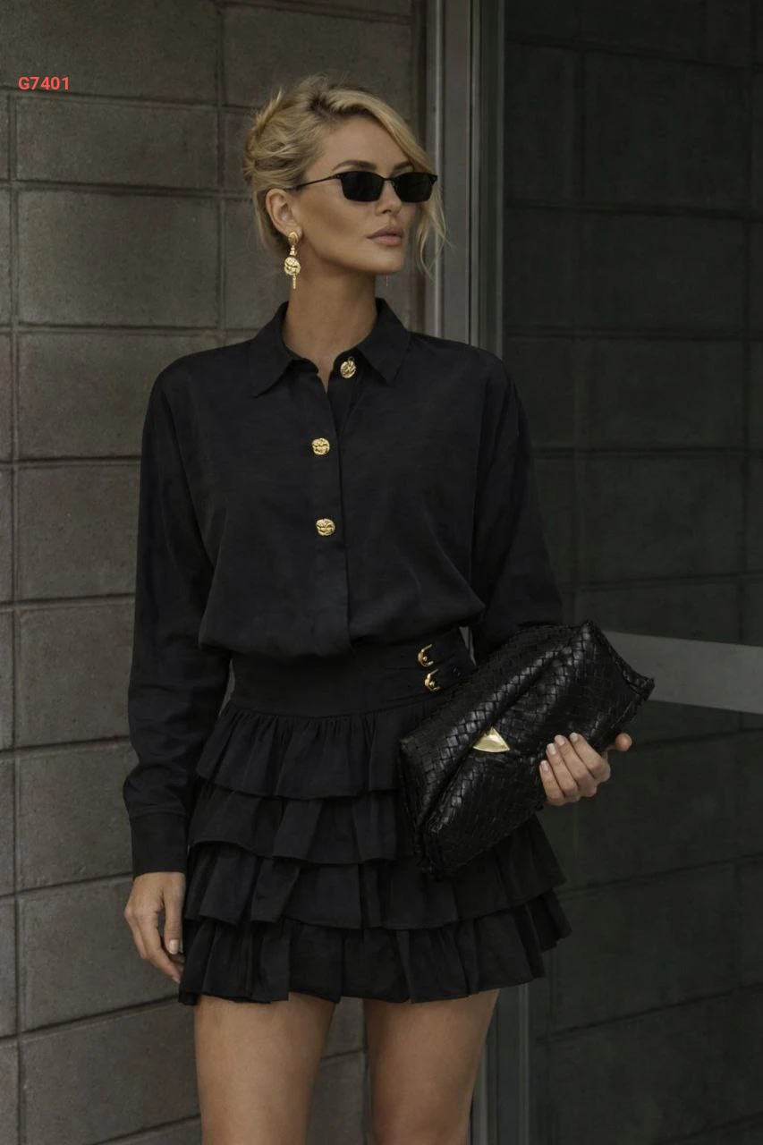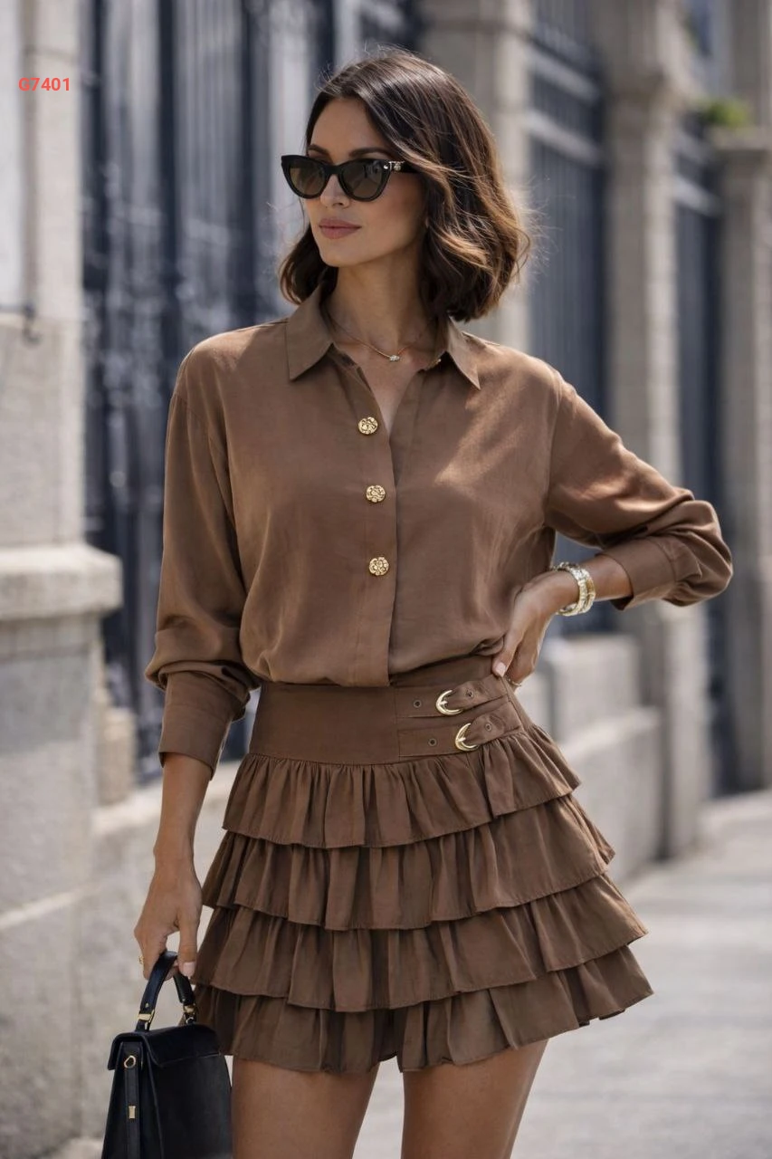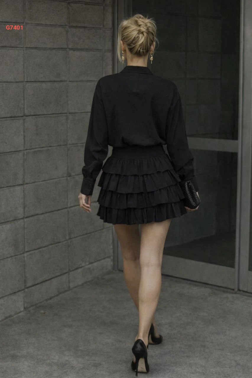 طقم تنورة قصير كشكش