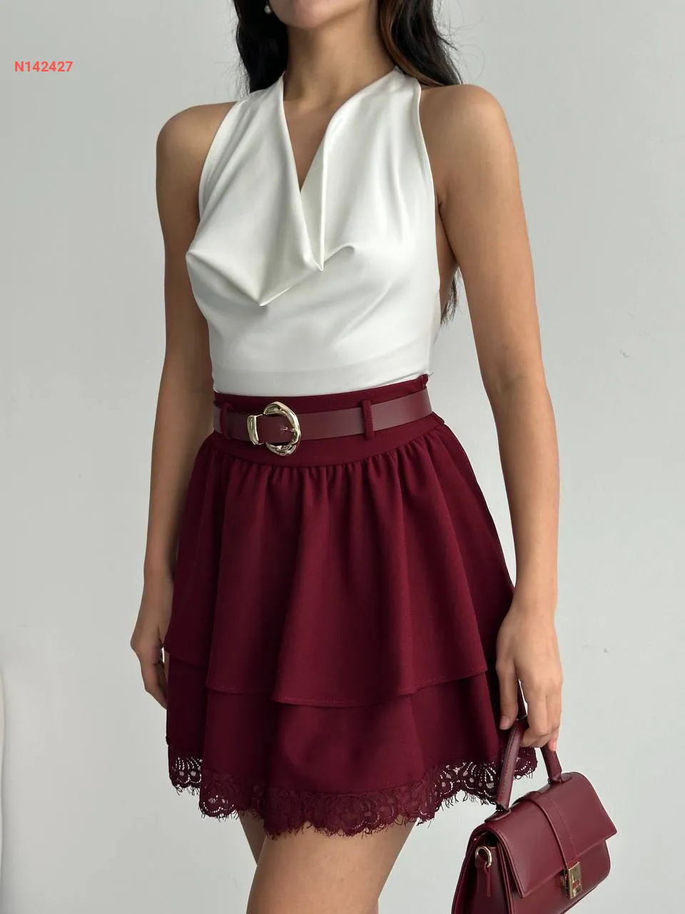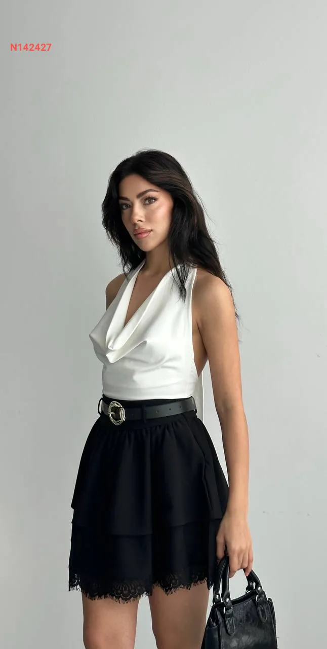 تنورة قصيرة كشكش مع دانتيل