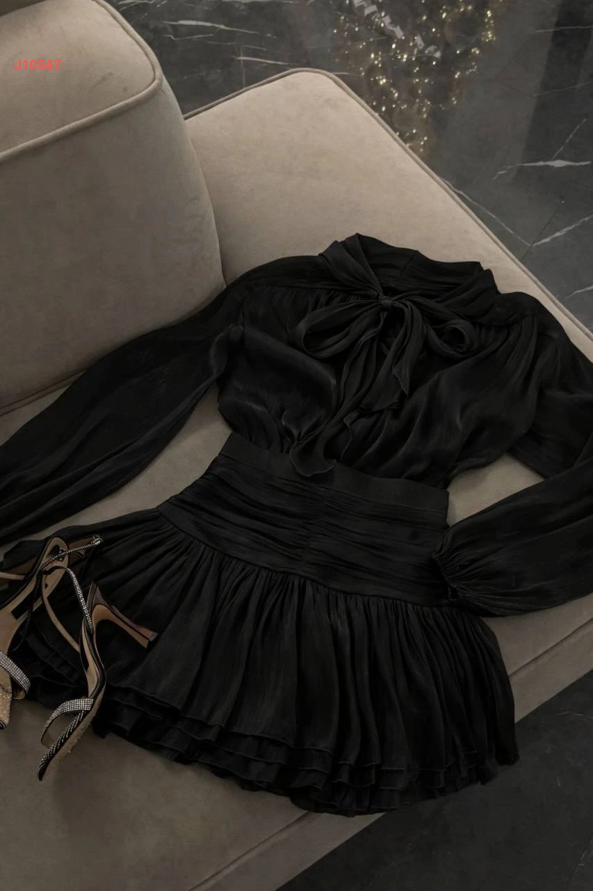 فستان قصير ساتان لميع بربطة عنق